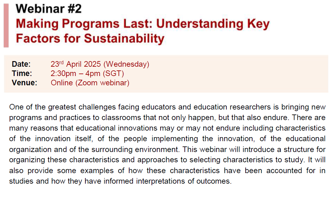 Centre for Assessment & Evaluation: Webinar Series by Visiting Consultant Dr Jeanne Century