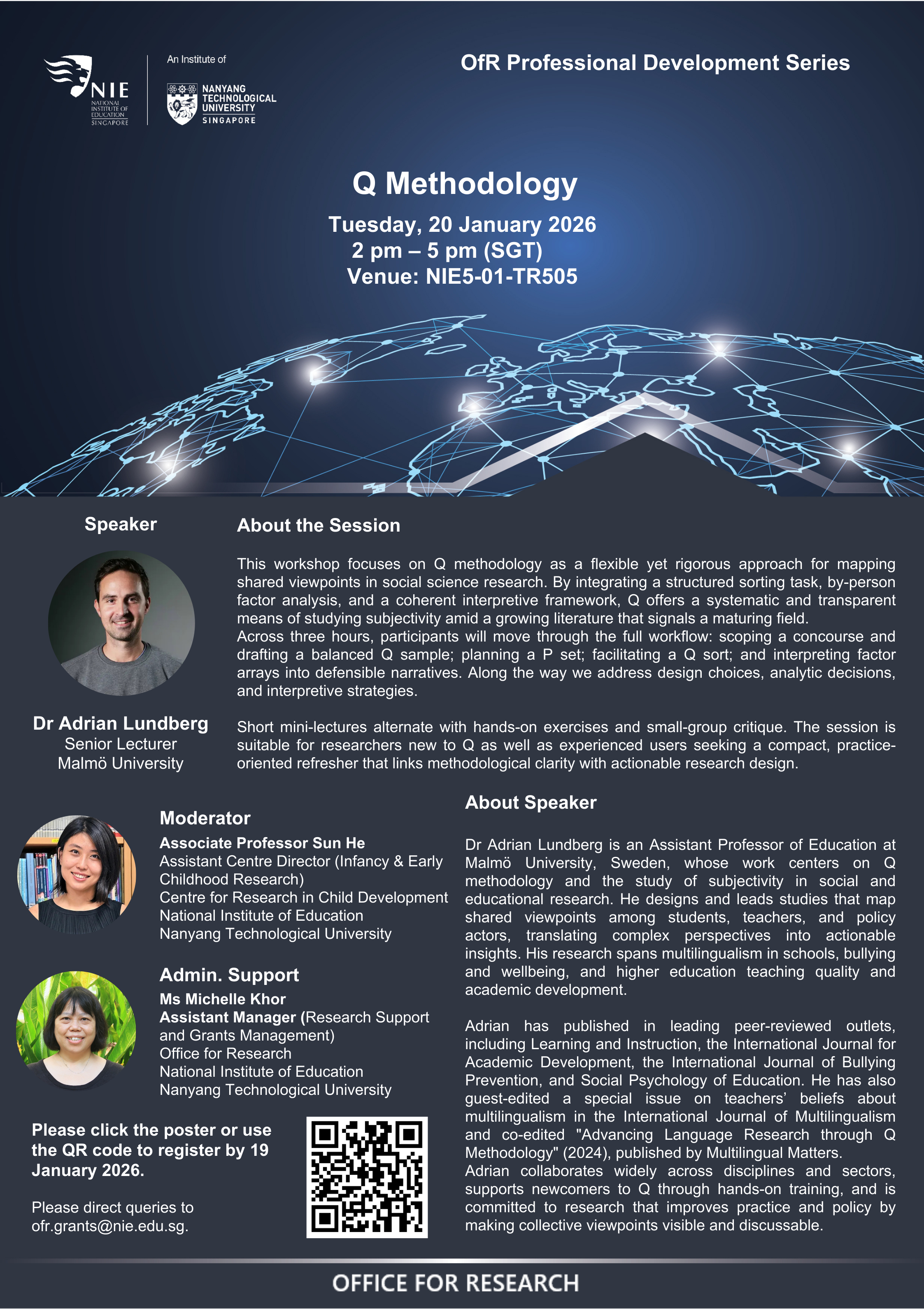 NIE's Office for Research (OfR) is thrilled to extend a warm invitation to you for our upcoming OfR Professional Development series!
