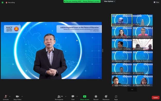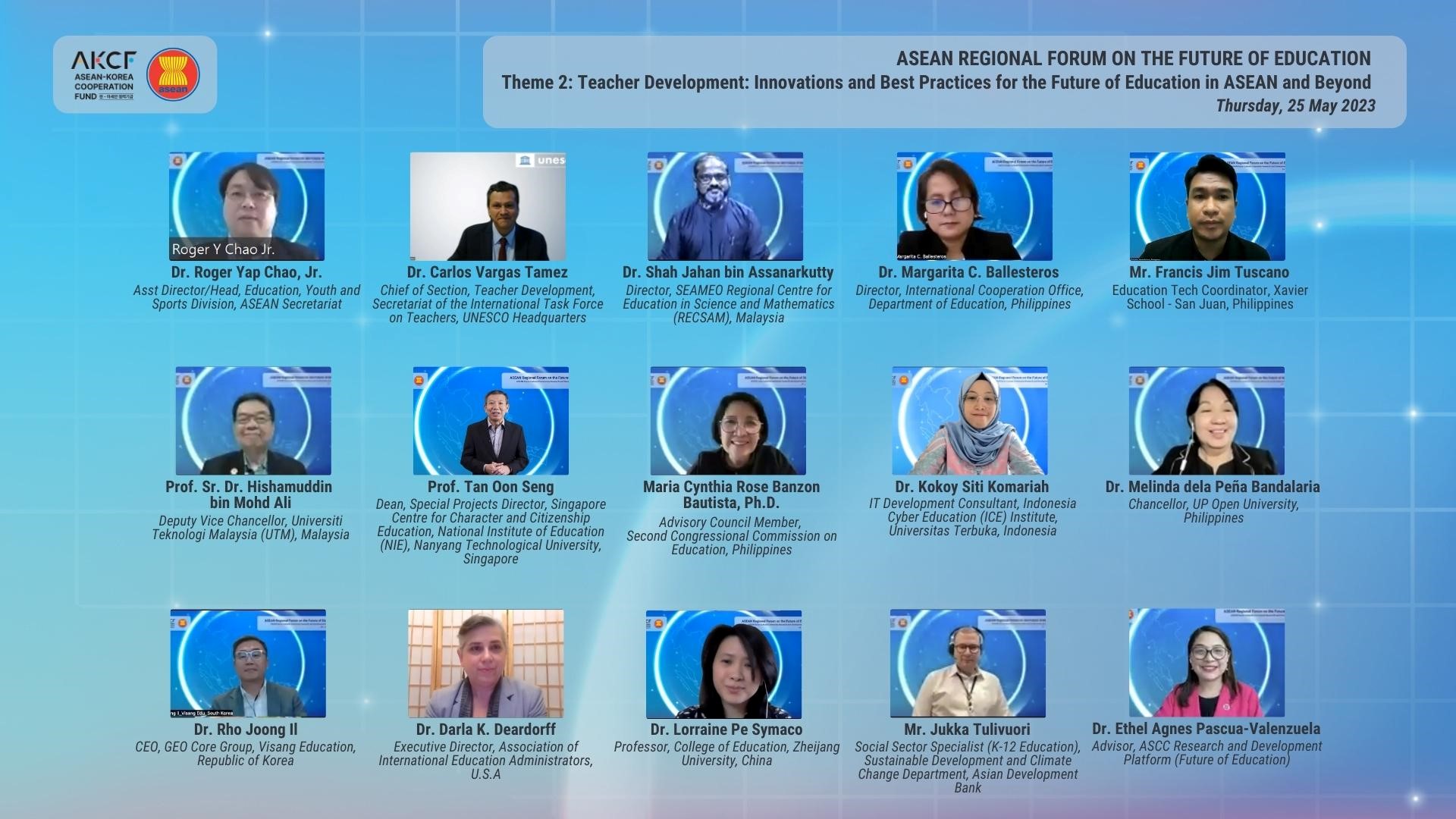 The ASEAN Regional Forum on the Future of Education was attended ministerial delegations and educational leaders from ASEAN comprising participating nations from the Republic of Korea (ROK), Brunei Darussalam, Cambodia, Indonesia, the Lao PDR, Malaysia, Thailand, Vietnam, Philippines, Singapore, USA, France and the People’s Republic of China. The three-day forum is the first in a series of events on the future of education under the ASEAN Socio Cultural Community (ASCC) Research and Development Programme funded by the ASEAN-Republic of Korea Cooperation Fund. Some 46 delegates attended the conference convened from 24 to 26 May 2023. Professor Tan Oon Seng, Dean of Special Projects and Centre Director of the Singapore Centre for Character and Citizenship Education, National Institute of Education, Nanyang Technological University, Singapore was invited by H.E. Ekkaphab Phanthavong, Deputy Secretary-General of ASEAN (Socio-Cultural Community) to be a Panel Speaker under the theme of Reimagining Teaching Standards in ASEAN: A Post-Pandemic Reform and Recovery Roadmap. Prof Tan spoke on “Teacher Policies for Teacher Growth: A Singapore Sharing”. In his video address, Prof Tan highlighted the importance of understanding the aims of education and providing strong professional development for teachers.