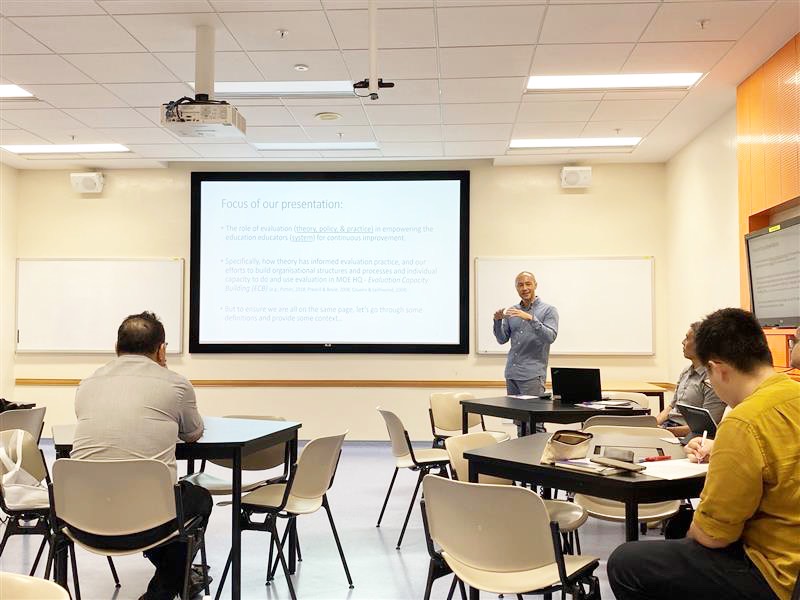 The Evaluation team consisting of AP Chong Wan Har (NIE, PCHD), Dr Jason Loh (NIE, ELL), Ms Michelle Tan (NIE, CAE) and Mr Mark Lee and Dr Liu Wei Cheng from MOE presented different facets of educational evaluation in Singapore and Asia with the intent to help researchers and educators obtain a nuanced overview on the state of work in the field. They provided an overview of 1) teacher educators' understanding about and perspectives of the role and state of Evaluation teaching in teacher preparation in NIE; 2) the use of evaluation theories in shaping evaluation practice in schools at Singapore MOE HQ, and 3) a research synthesis undertaken to examine the state and nature of educational evaluation in Asia.