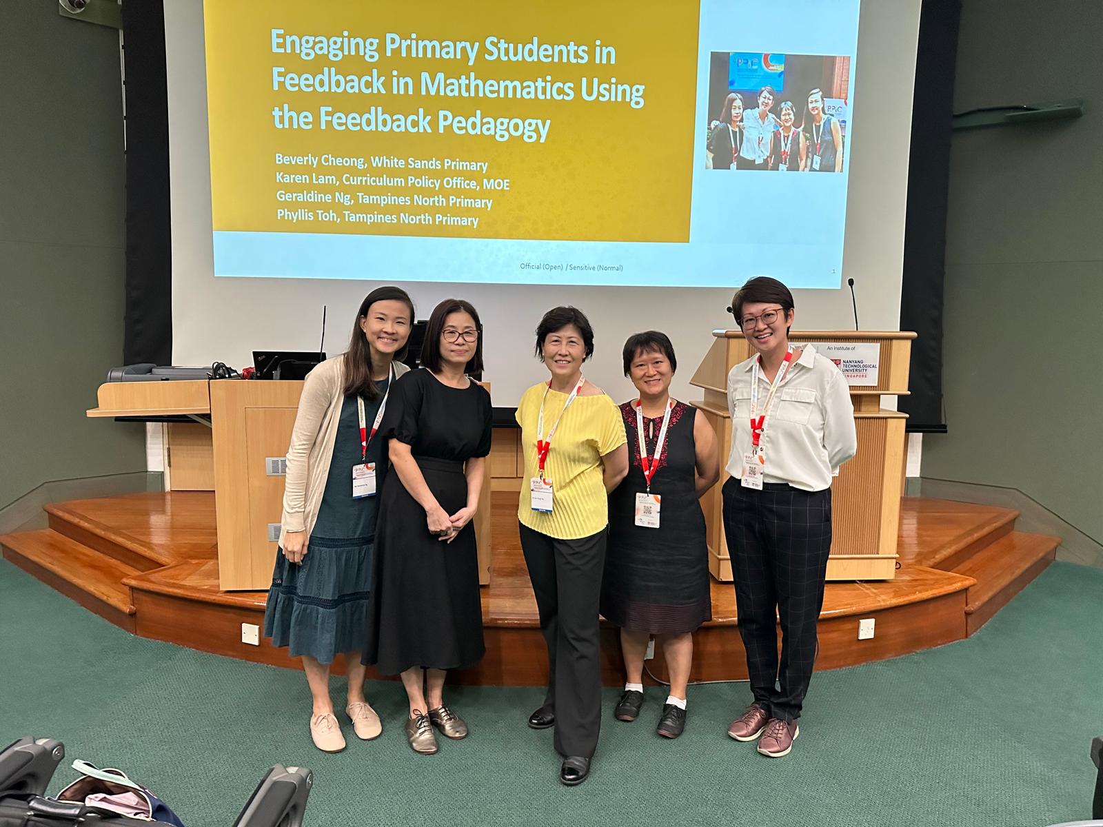 Dr Tay Hui Yong (CAE, Head of Assessment Team) fronted as a discussant, offering insights into the symposium topic and strategies for effectively engaging students in acting on feedback. Dr Karen Lam from MOE, along with educators, Ms Beverly Cheong, Ms Geraldine Ng and Ms Phyllis Toh presented insights to primary math teachers’ belief on young learners acting on feedback and the use of feedback pedagogy to enhance students’ math learning. Additionally, it highlights the student’s role in the process, illustrated by case studies where they shared their experience and key takeaways.