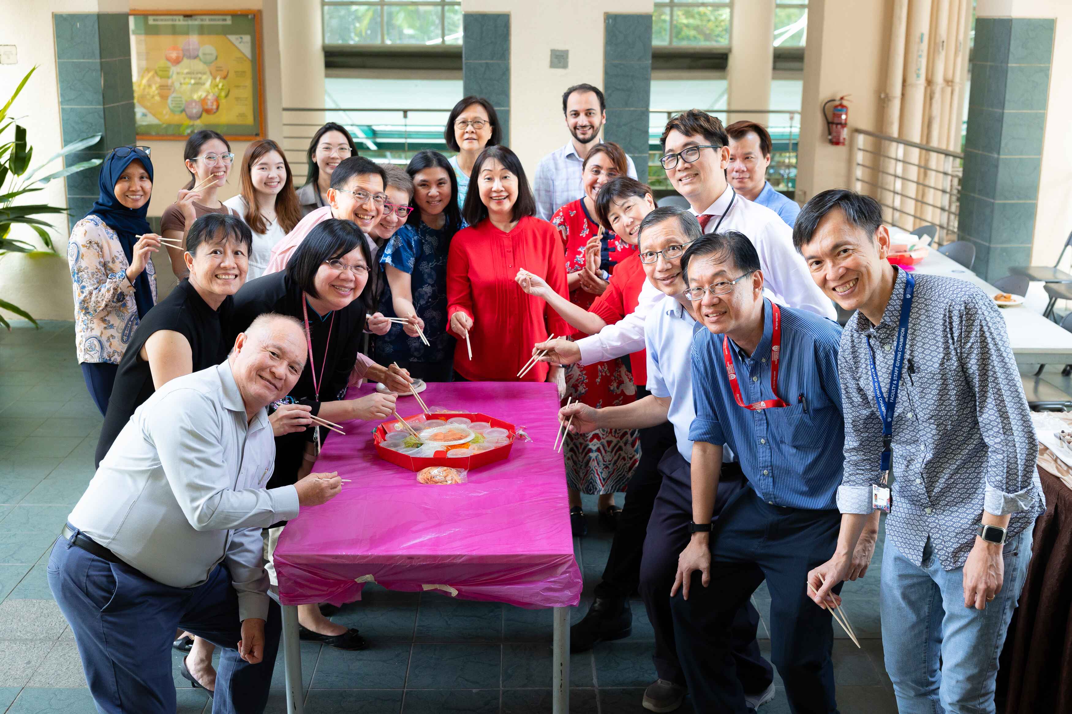 Capitalising on the recent celebration of the Lunar New Year, the Centre seized the opportunity to invite NIE Director Christine Goh, together with senior management, colleagues and our special-interest group, EVASS-SIG for a lively lohei (tossing of a salad for prosperity) session at our revamped office.