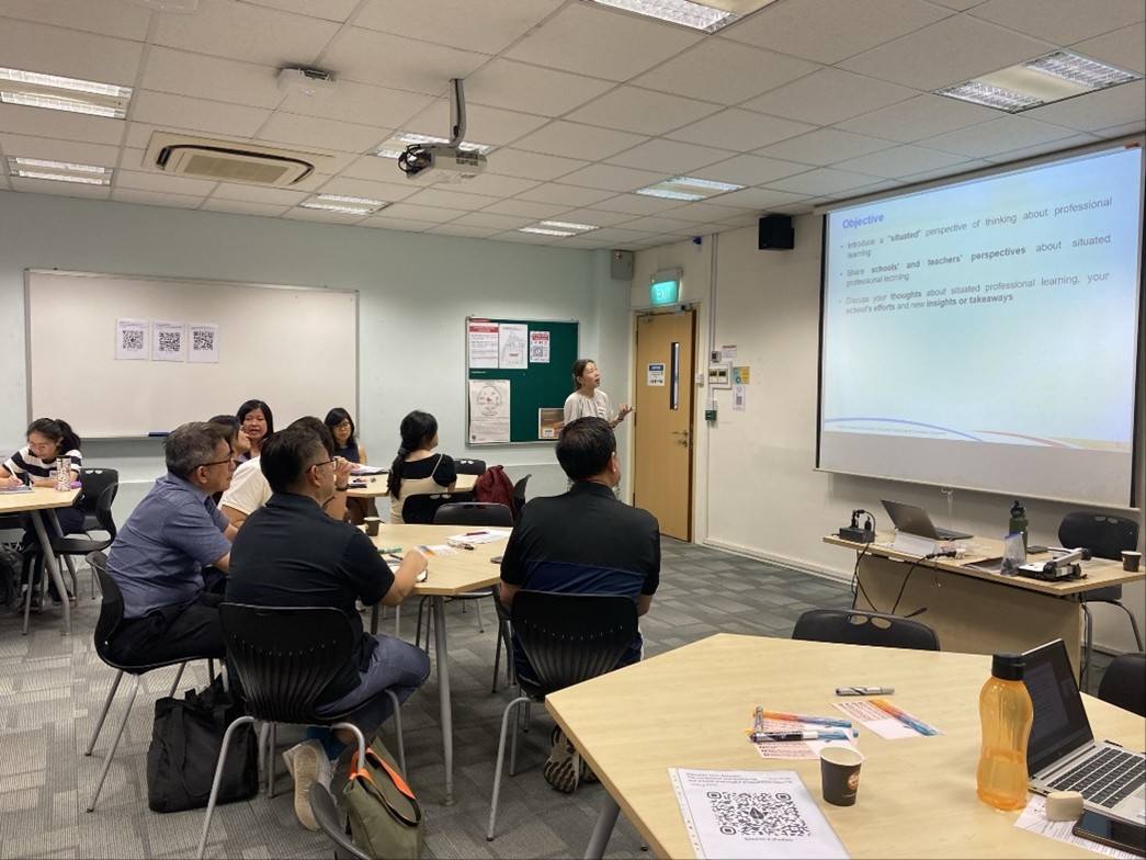 Dr Lee shared her research findings on situated professional learning with SSDs from primary, secondary and junior college levels. Through her sharing, Dr Lee invited the SSDs to engage with one another and reflect on current school practices that align with situated professional learning. This opened a space for SSDs to exchange experiences and discuss challenges in schools.