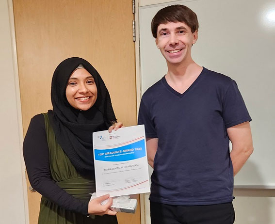 Tiara Binte M Hamarian received the 2023 Top Graduate Award for MEd English programme from ELL AG on 14 August 2023.