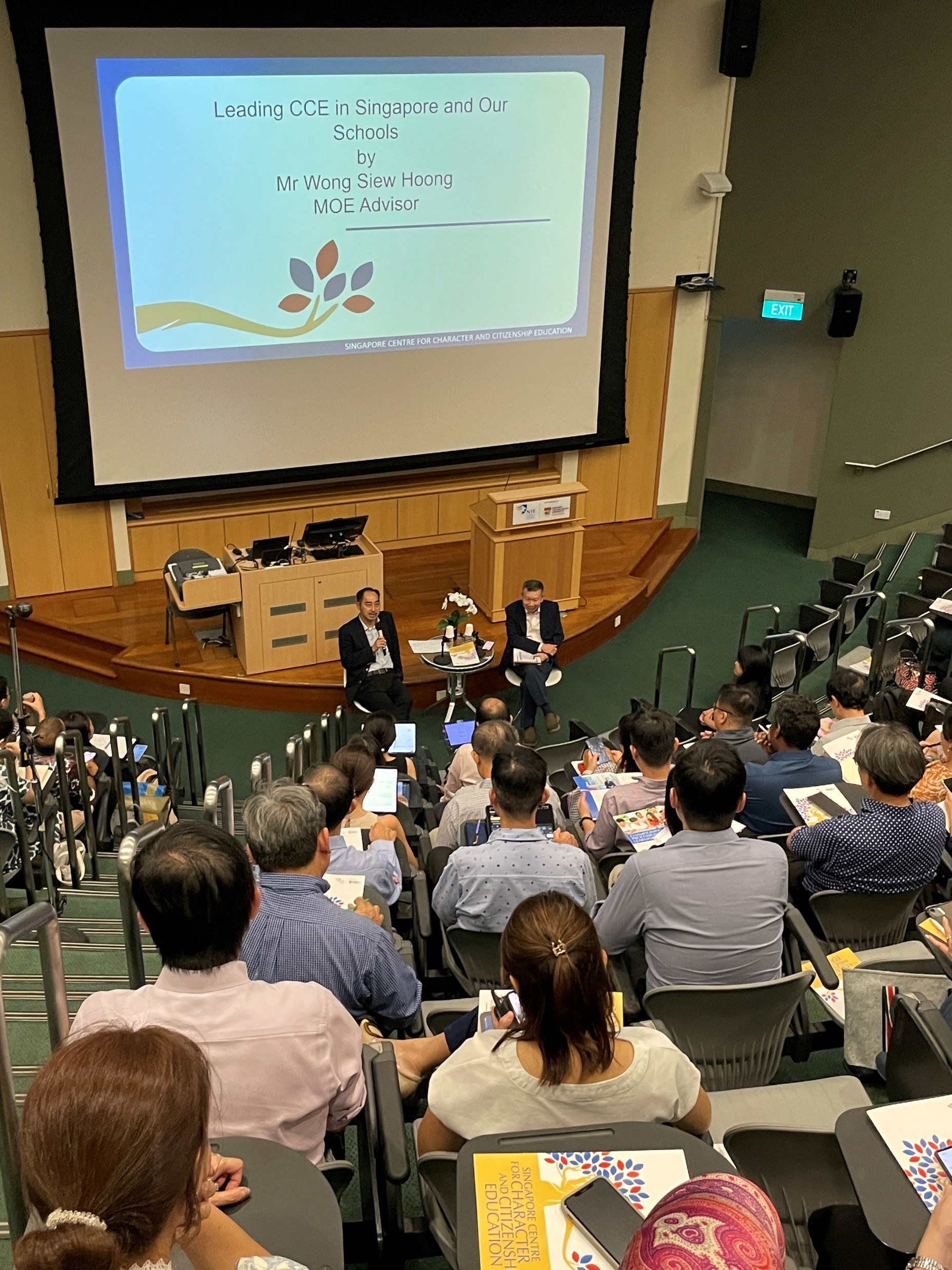 The Singapore Centre for Character and Citizenship Education (SCCCE) conducted its first forum of the year on 5 August 2024. This was a closed-door forum for school leaders and about 120 participants were at LT2 to listen to Mr Wong Siew Hoong, former Director-General of Education and current MOE Advisor speak about ‘Leading CCE in Singapore and our schools.’ In his own inimitable way, Mr Wong engaged the audience on the significant CCE issues of the day. He reiterated the criticality of CCE in today’s world and how CCE should not be subordinated in importance to other academic subjects. Mr Wong emphasised that MOE must remain the key custodian of the CCE curriculum, despite external pressures. He further stressed the importance of professional development of teachers as CCE pedagogical practices evolve with the changing of times to meet current needs. Mr Wong also officially unveiled and launched the SCCCE framework at the forum.