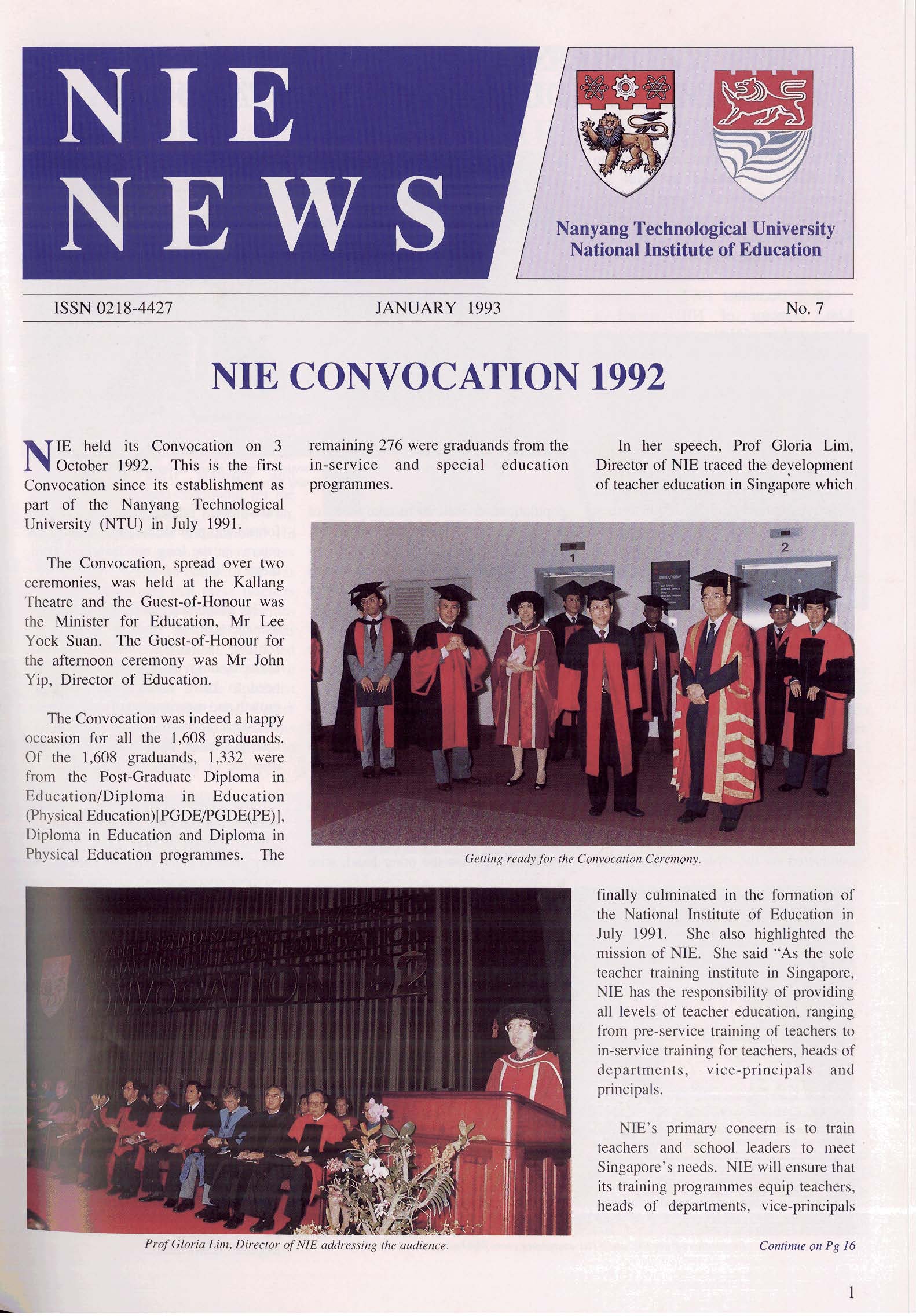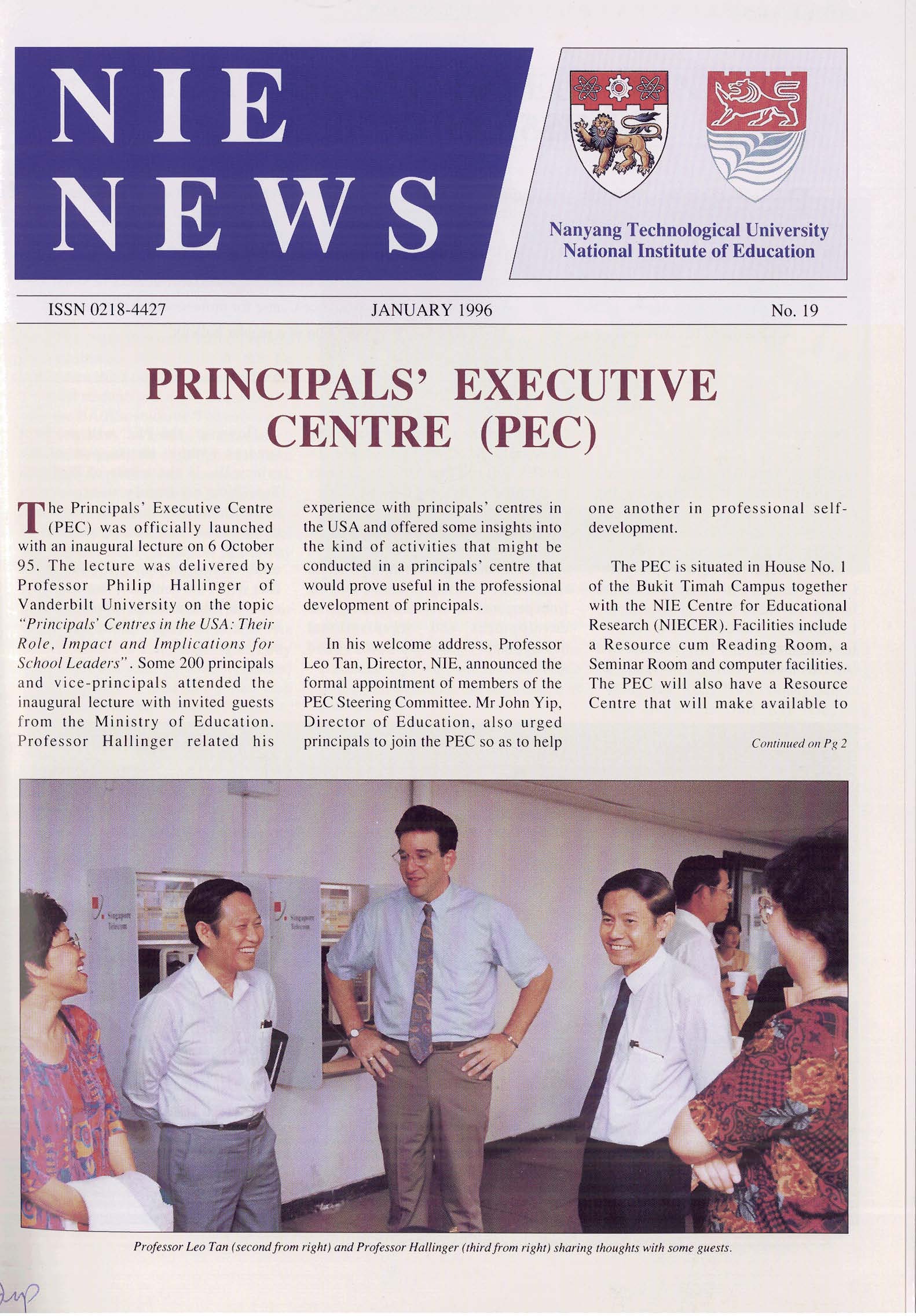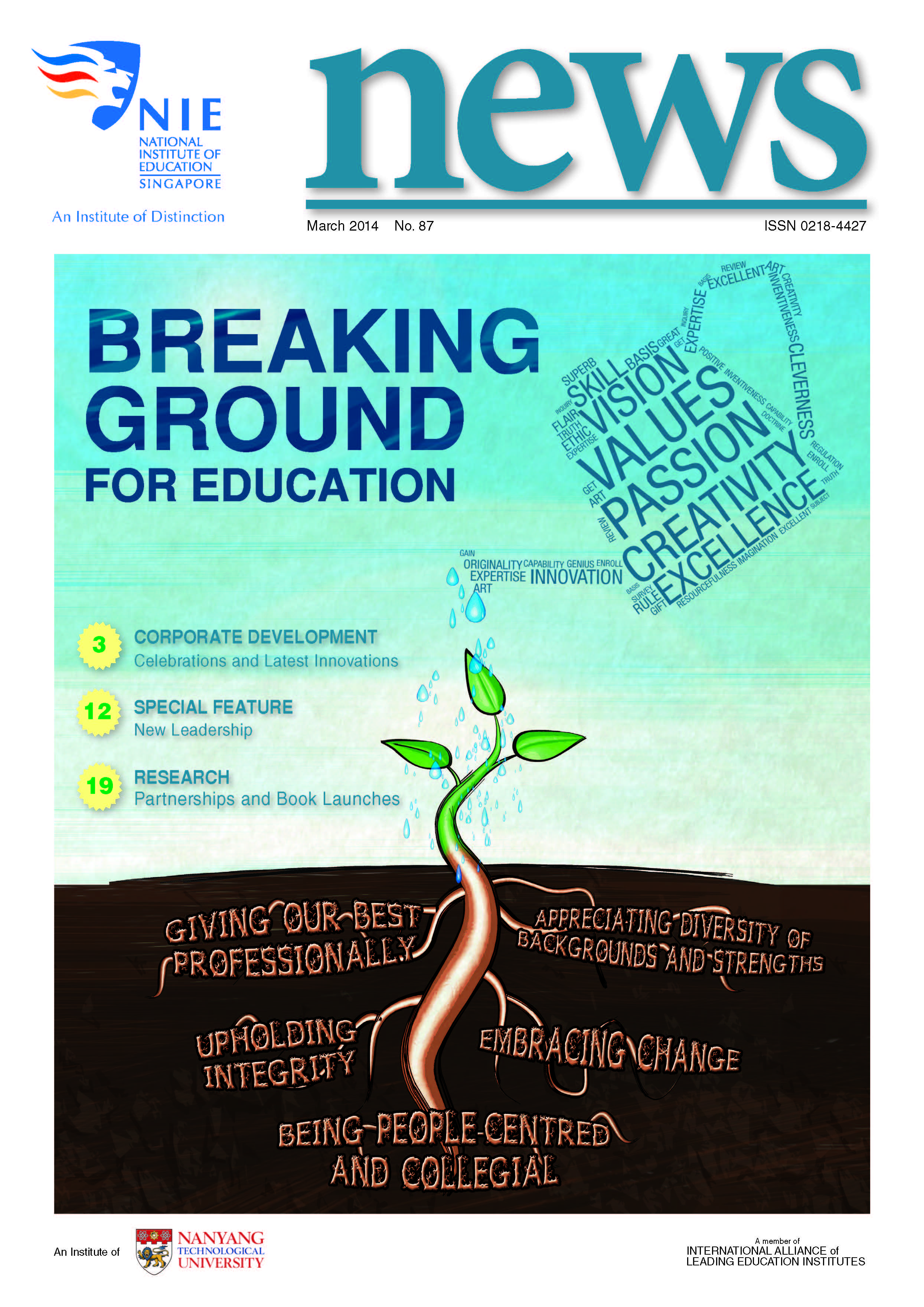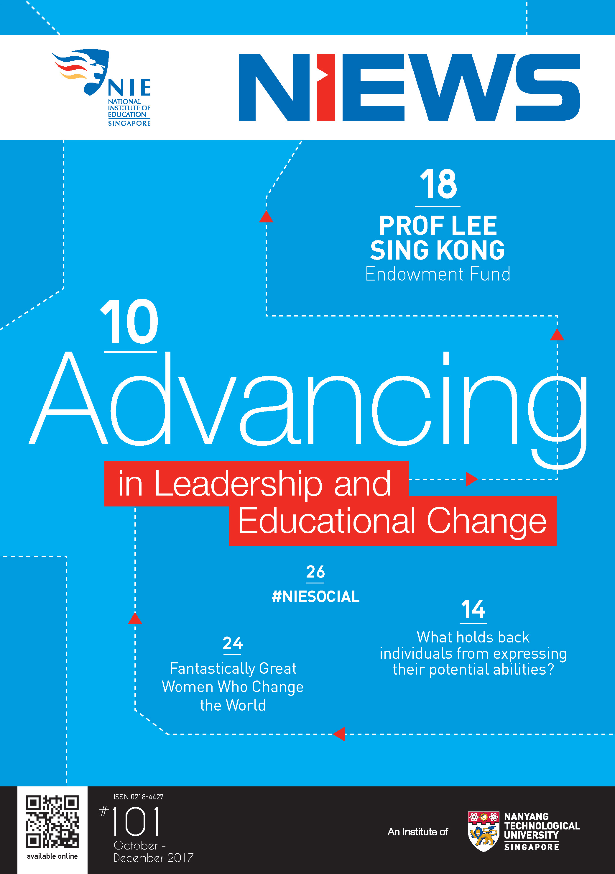 NIEWS 2020s #131 Unlocking Potential With Strategic SynergyMarch 2025 #132 Innovation through Inclusive EducationJune 2025 #133 Supercharging Teacher DevelopmentSeptember 2025 #134 Reflecting On Our Collective AchievementsDecember 2025 #130 Strengthening NetworksDecember 2024 #129 Instilling a Caring CultureSeptember 2024 #128 Championing Knowledge CreationJune 2024 #127 Unlocking the power for EdTechMarch 2024 #126 Ready for the FutureDecember 2023 #125Wired for KnowledgeSeptember 2023 #124Diversity in LearningJune 2023 #123Inspired to ServeMarch 2023 #122Reinforcing ValuesDecember 2022 #121Reimagining EducationSeptember 2022 #120Rethinking PossibilitiesJune 2022 #119Reconnecting LearningMarch 2022 #118Play to LearnDecember 2021 #117Building ResilienceSeptember 2021 #116Reimagining PedagogiesJune 2021 #115Rekindling InnovationMarch 2021 #114From Z to ADecember 2020 #113Learning UnlimitedSeptember 2020 #112The Teacher's Digital ToolboxJune 2020 #111Growing Into TeacherhoodMarch 2020 2010s #110Forward & UpwardDecember 2019 #109Celebrating Educators of TodaySeptember 2019 #108Architects of Learning EnvironmentJune 2019 #107Steering Learners in a Borderless WorldMarch 2019 #106A Future-Ready NIEDecember 2018 #105Prism of PossibilitiesSeptember 2018 #104Through A Different LensJune 2018 #103Nurture & NatureApril 2018 #102Transformation & ContinuityJanuary 2018 #101Advancing in Leadership and Educational ChangeOctober 2017 #100100th Issue: The Joy of LearningJuly 2017 #99Leading LearnerMarch 2017 #98Growing GlobalDecember 2016 #97Harnessing TalentSeptember 2016 #96Powering PassionJune 2016 #95Challenging CreativityMarch 2016 #94Impacting InsightDecember 2015 #93Driving DiscoverySeptember 2015 #92Scripting IntelligenceJune 2015 #91Seeding TalentMarch 2015 #90Reinventing the Future of LearningDecember 2014 #89Mapping Out Good LearningSeptember 2014 #88Opening Doors for Higher EducationJune 2014 #87Breaking Ground for EducationMarch 2014 #86Classroom InnovatorsDecember 2013 #85Growing ExcellenceSeptember 2013 #84Learning InspirationJune 2013 #83Leading ChangeMarch 2013 #82Designing the FutureDecember 2012 #81Teaching InspirationSeptember 2012 #80Growing ExcellenceJune 2012 #79Passion for TeachingMarch 2012 #78Passion for ServingDecember 2011 #77Passion for CollaboratingSeptember 2011 #76Passion for LearningJune 2011 #7521st Century Educators Lead with PassionMarch 2011 2000s #7460 Years of EducationDecember 2010 #73Touching Hearts and Transforming MindsSeptember 2010 #72Singapore Youth Olympic Games 2010 Special IssueJune 2010 #716 Decades of Transforming TeachingMarch 2010 #70Teacher Education in the 21st CenturyDecember 2009 #69Convocation 2009September 2009 #68Research. Art Gallery. Creativity. Innovative Teaching Technology.May 2009 #67Search Wikipedia: NIE AchievementsFebruary 2009 #66NIE Director's Race 2008October 2008 #65Leaders in the Service of LearnersJuly 2008 #64Learning to Serve, Serving to LearnApril 2008 #63January 2008 #62October 2007 #61July 2007 #60April 2007 #59January 2007 #58October 2006 #57July 2006 #56April 2006 #55January 2006 #54NIE's Conservation Efforts Lead to Release of Hawksbill Turtle HatchlingsOctober 2005 #53NIE is Energy EfficientJuly 2005 #52Teach Less, Learn MoreApril 2005 #51Caring & GivingJanuary 2005 #50Caring & GivingOctober 2004 #49Celebrate Learning!July 2004 #48April 2004 #47Signing CeremonyJanuary 2004 #46October 2003 #45Appointment Changes in ConversationJuly 2003 #44April 2003 #43Professor Leo Tan Awarded Ordre National du MeriteJanuary 2003 #42The Caring Teacher Awards 2002October 2002 #41July 2002 #40NIE Official OpeningApril 2002 #39NIE of NantahJanuary 2002 #38NIE: An Institute of Distinction?October 2001 #37An Invitation to the NIE Open HouseJuly 2001 #36Thoughts on the NIE Corporate Seminar 2001April 2001 #35Yunnan Garden Here We ComeFebruary 2001 1990s #34The Reflective SpinOctober 1999 #33Teacher's Investiture CeremonyJuly 1999 #32April 1999 #31Continuity and ChangeJanuary 1999 #30NIE Convocation 1998October 1998 #29The Singapore Centre for Teaching ThinkingJuly 1998 #28Educating the FutureApril 1998 #27AIESEP Singapore 1997 World ConferenceJanuary 1998 #26It's Never Too LateOctober 1997 #25The Thinking ConferenceJuly 1997 #24Minister's VisitApril 1997 #23The Tan Kah Kee ProfessorshipJanuary 1997 #22Scholars in the Teaching ProfessionOctober 1996 #21A Sign of Things to ComeJuly 1996 #20Professor Sir Michael Howard Lee Kuan Yew Distinguished VisitorApril 1996 #19Principal's Executive Centre (PEC)January 1996 #18Convocation 1995October 1995 #17The Eighth Asian Workshop on Child and Adolescent DevelopmentJuly 1995 #16NIE Celebrates World ChampionApril 1995 #15Designing Drugs Through Computer SimulationJanuary 1995 #14Convocation 1994October 1994 #13Relocation of NIE to Jurong CampusJuly 1994 #12Programme for National AwarenessApril 1994 #11A Glorious First... Commonwealth Writer's Prize 1993January 1994 #10Mentoring in Management Education: The NIE ModelOctober 1993 #9NIE Signed Memorandum of Understanding with the National Parks BoardJuly 1993 #8Elaine Feinstein: NTU's First Writer In-Residence - A Brief and Personal ResponseApril 1993 #7NIE Convocation 1992January 1993 #6NTU Open DayOctober 1992 #5Visit to UK UniversitiesJuly 1992 #4The Tree of Education - A Sculpture by Chern Lian ShanApril 1992 #3NIE (NTU) - SISIR Joint Project Agreement on the Lettuce Research ProjectJanuary 1992 #2Ministers Visit NIEOctober 1991 #1NTU Inauguration - A Major Step ForwardJuly 1991