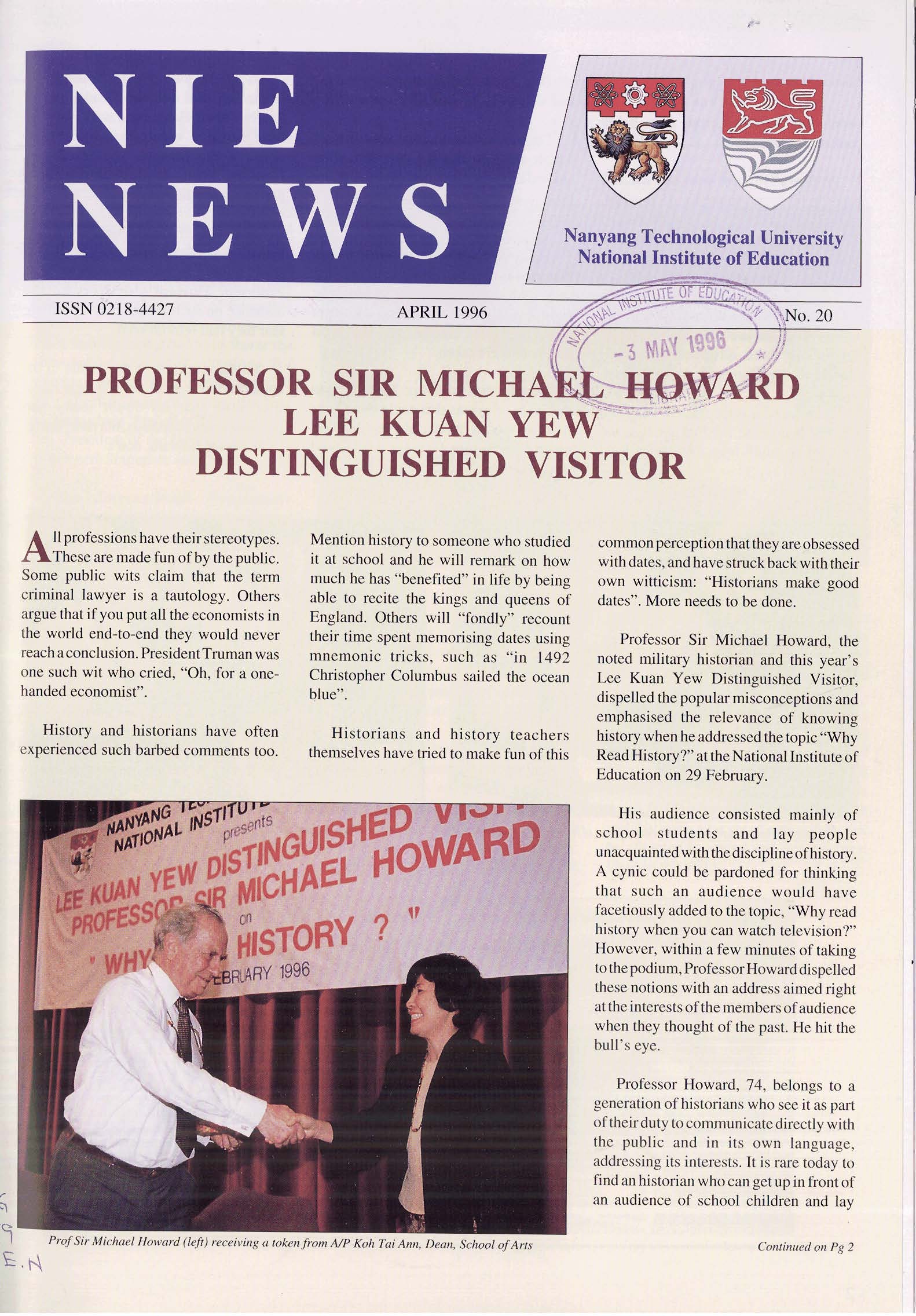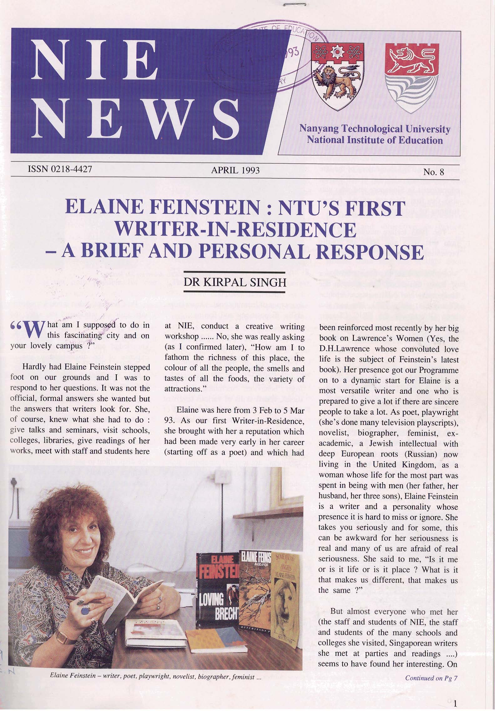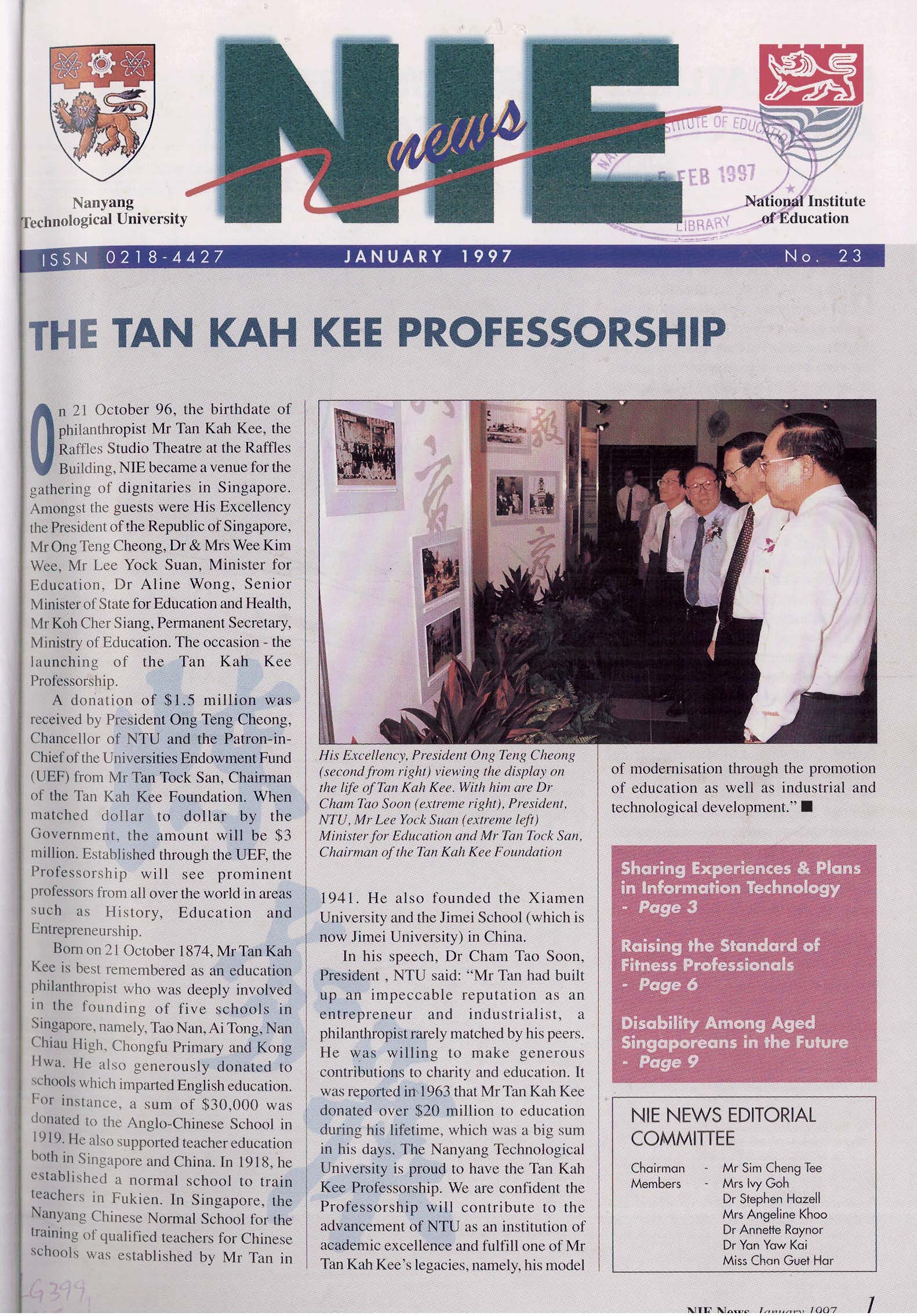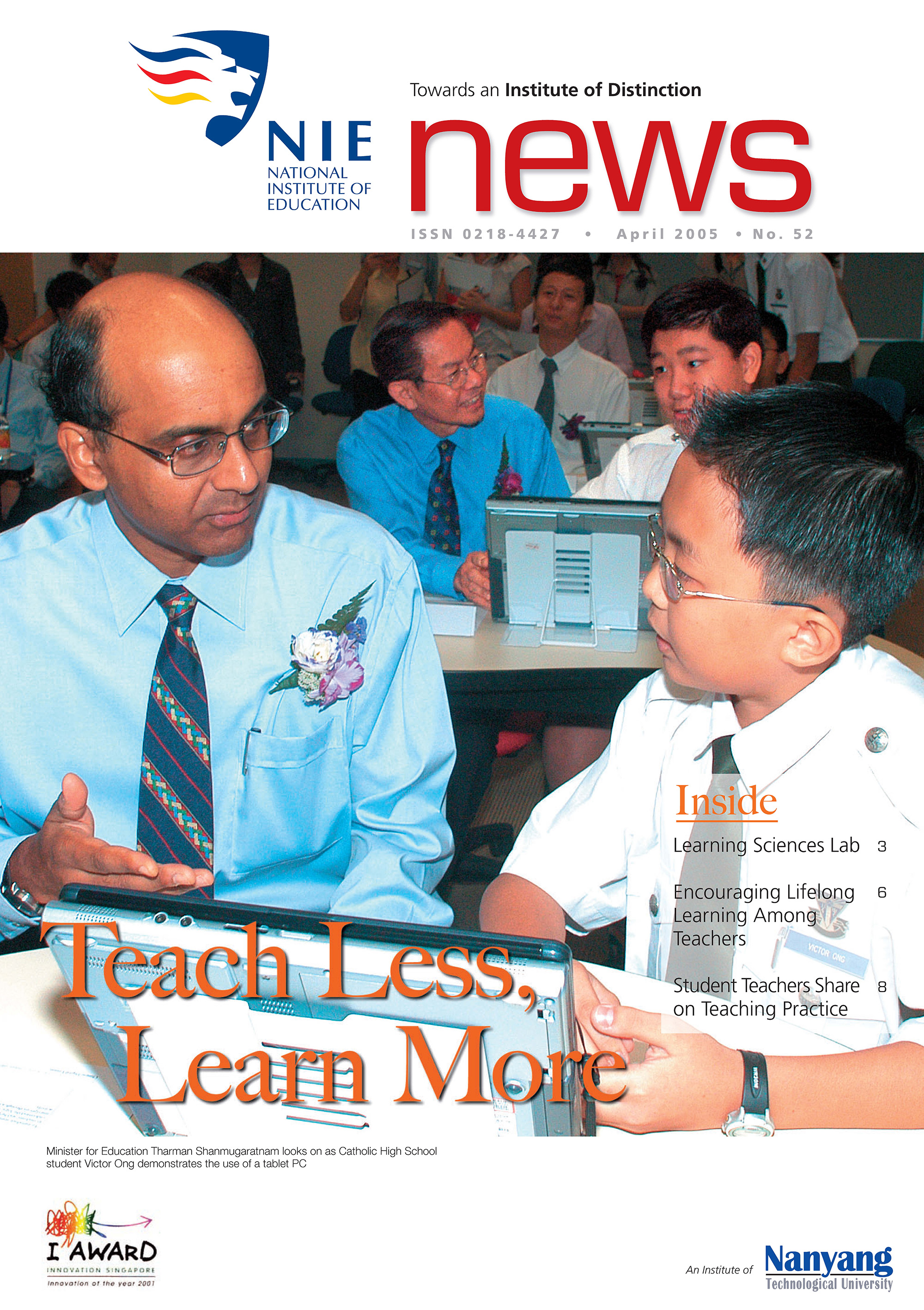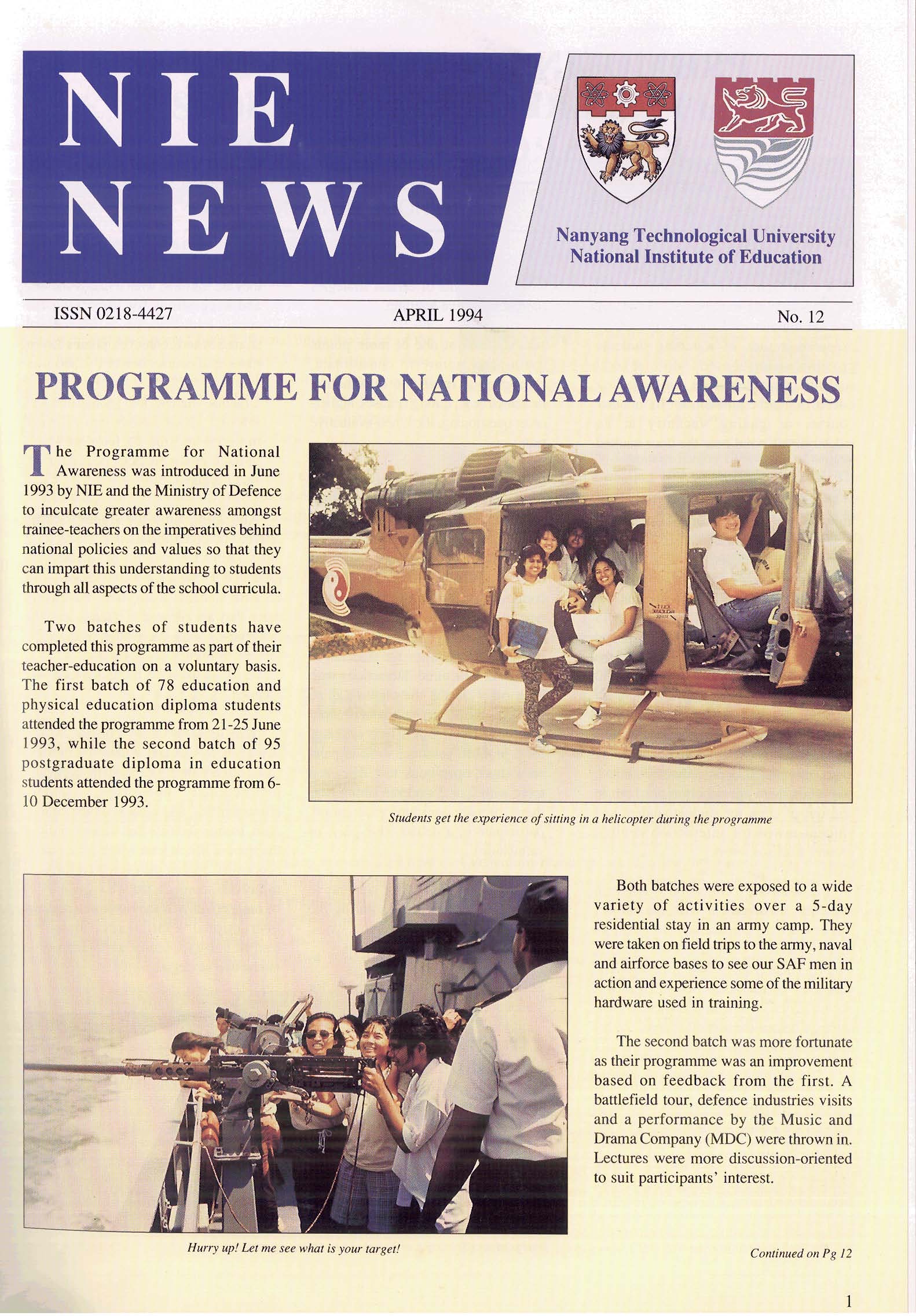 NIEWS 2020s #131 Unlocking Potential With Strategic SynergyMarch 2025 #132 Innovation through Inclusive EducationJune 2025 #133 Supercharging Teacher DevelopmentSeptember 2025 #134 Reflecting On Our Collective AchievementsDecember 2025 #130 Strengthening NetworksDecember 2024 #129 Instilling a Caring CultureSeptember 2024 #128 Championing Knowledge CreationJune 2024 #127 Unlocking the power for EdTechMarch 2024 #126 Ready for the FutureDecember 2023 #125Wired for KnowledgeSeptember 2023 #124Diversity in LearningJune 2023 #123Inspired to ServeMarch 2023 #122Reinforcing ValuesDecember 2022 #121Reimagining EducationSeptember 2022 #120Rethinking PossibilitiesJune 2022 #119Reconnecting LearningMarch 2022 #118Play to LearnDecember 2021 #117Building ResilienceSeptember 2021 #116Reimagining PedagogiesJune 2021 #115Rekindling InnovationMarch 2021 #114From Z to ADecember 2020 #113Learning UnlimitedSeptember 2020 #112The Teacher's Digital ToolboxJune 2020 #111Growing Into TeacherhoodMarch 2020 2010s #110Forward & UpwardDecember 2019 #109Celebrating Educators of TodaySeptember 2019 #108Architects of Learning EnvironmentJune 2019 #107Steering Learners in a Borderless WorldMarch 2019 #106A Future-Ready NIEDecember 2018 #105Prism of PossibilitiesSeptember 2018 #104Through A Different LensJune 2018 #103Nurture & NatureApril 2018 #102Transformation & ContinuityJanuary 2018 #101Advancing in Leadership and Educational ChangeOctober 2017 #100100th Issue: The Joy of LearningJuly 2017 #99Leading LearnerMarch 2017 #98Growing GlobalDecember 2016 #97Harnessing TalentSeptember 2016 #96Powering PassionJune 2016 #95Challenging CreativityMarch 2016 #94Impacting InsightDecember 2015 #93Driving DiscoverySeptember 2015 #92Scripting IntelligenceJune 2015 #91Seeding TalentMarch 2015 #90Reinventing the Future of LearningDecember 2014 #89Mapping Out Good LearningSeptember 2014 #88Opening Doors for Higher EducationJune 2014 #87Breaking Ground for EducationMarch 2014 #86Classroom InnovatorsDecember 2013 #85Growing ExcellenceSeptember 2013 #84Learning InspirationJune 2013 #83Leading ChangeMarch 2013 #82Designing the FutureDecember 2012 #81Teaching InspirationSeptember 2012 #80Growing ExcellenceJune 2012 #79Passion for TeachingMarch 2012 #78Passion for ServingDecember 2011 #77Passion for CollaboratingSeptember 2011 #76Passion for LearningJune 2011 #7521st Century Educators Lead with PassionMarch 2011 2000s #7460 Years of EducationDecember 2010 #73Touching Hearts and Transforming MindsSeptember 2010 #72Singapore Youth Olympic Games 2010 Special IssueJune 2010 #716 Decades of Transforming TeachingMarch 2010 #70Teacher Education in the 21st CenturyDecember 2009 #69Convocation 2009September 2009 #68Research. Art Gallery. Creativity. Innovative Teaching Technology.May 2009 #67Search Wikipedia: NIE AchievementsFebruary 2009 #66NIE Director's Race 2008October 2008 #65Leaders in the Service of LearnersJuly 2008 #64Learning to Serve, Serving to LearnApril 2008 #63January 2008 #62October 2007 #61July 2007 #60April 2007 #59January 2007 #58October 2006 #57July 2006 #56April 2006 #55January 2006 #54NIE's Conservation Efforts Lead to Release of Hawksbill Turtle HatchlingsOctober 2005 #53NIE is Energy EfficientJuly 2005 #52Teach Less, Learn MoreApril 2005 #51Caring & GivingJanuary 2005 #50Caring & GivingOctober 2004 #49Celebrate Learning!July 2004 #48April 2004 #47Signing CeremonyJanuary 2004 #46October 2003 #45Appointment Changes in ConversationJuly 2003 #44April 2003 #43Professor Leo Tan Awarded Ordre National du MeriteJanuary 2003 #42The Caring Teacher Awards 2002October 2002 #41July 2002 #40NIE Official OpeningApril 2002 #39NIE of NantahJanuary 2002 #38NIE: An Institute of Distinction?October 2001 #37An Invitation to the NIE Open HouseJuly 2001 #36Thoughts on the NIE Corporate Seminar 2001April 2001 #35Yunnan Garden Here We ComeFebruary 2001 1990s #34The Reflective SpinOctober 1999 #33Teacher's Investiture CeremonyJuly 1999 #32April 1999 #31Continuity and ChangeJanuary 1999 #30NIE Convocation 1998October 1998 #29The Singapore Centre for Teaching ThinkingJuly 1998 #28Educating the FutureApril 1998 #27AIESEP Singapore 1997 World ConferenceJanuary 1998 #26It's Never Too LateOctober 1997 #25The Thinking ConferenceJuly 1997 #24Minister's VisitApril 1997 #23The Tan Kah Kee ProfessorshipJanuary 1997 #22Scholars in the Teaching ProfessionOctober 1996 #21A Sign of Things to ComeJuly 1996 #20Professor Sir Michael Howard Lee Kuan Yew Distinguished VisitorApril 1996 #19Principal's Executive Centre (PEC)January 1996 #18Convocation 1995October 1995 #17The Eighth Asian Workshop on Child and Adolescent DevelopmentJuly 1995 #16NIE Celebrates World ChampionApril 1995 #15Designing Drugs Through Computer SimulationJanuary 1995 #14Convocation 1994October 1994 #13Relocation of NIE to Jurong CampusJuly 1994 #12Programme for National AwarenessApril 1994 #11A Glorious First... Commonwealth Writer's Prize 1993January 1994 #10Mentoring in Management Education: The NIE ModelOctober 1993 #9NIE Signed Memorandum of Understanding with the National Parks BoardJuly 1993 #8Elaine Feinstein: NTU's First Writer In-Residence - A Brief and Personal ResponseApril 1993 #7NIE Convocation 1992January 1993 #6NTU Open DayOctober 1992 #5Visit to UK UniversitiesJuly 1992 #4The Tree of Education - A Sculpture by Chern Lian ShanApril 1992 #3NIE (NTU) - SISIR Joint Project Agreement on the Lettuce Research ProjectJanuary 1992 #2Ministers Visit NIEOctober 1991 #1NTU Inauguration - A Major Step ForwardJuly 1991