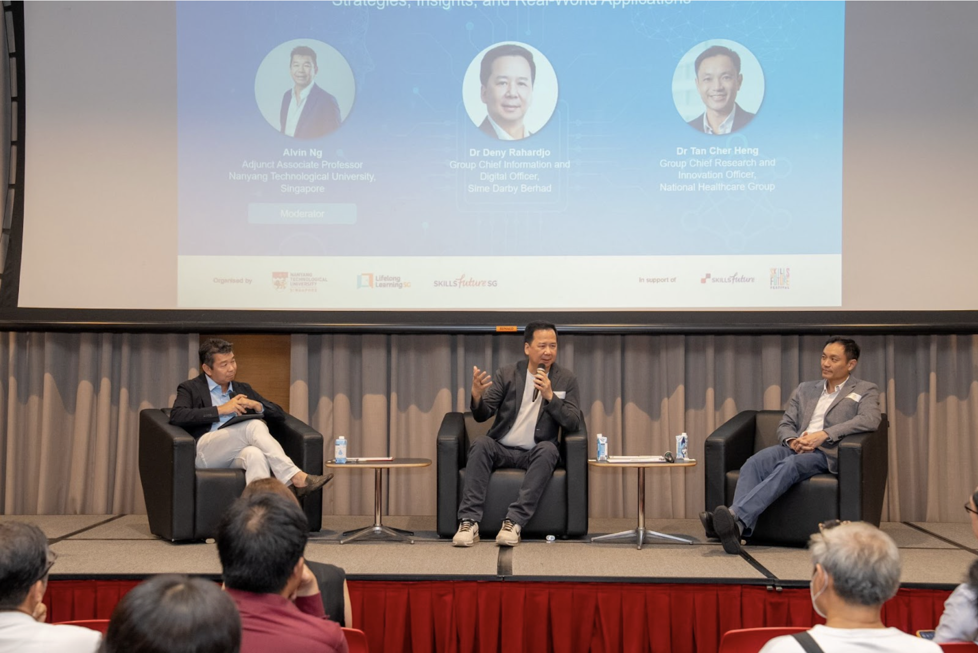 The event featured a thought-provoking panel discussion on how senior industry leaders are driving AI adoption within their organisations. Dr. Tan Cher Heng highlighted how AI holds great promise in addressing manpower shortages in the healthcare sector. The National Healthcare Group is a public healthcare provider in Singapore known for its commitment towards healthy living through preventative care and person-centred programmes tailored to people in different life stages. He shared that the National Healthcare Group is currently piloting the use of AI at Geylang Polyclinic to identify patterns in X-ray images of patients with pneumonia — a move that has significantly shortened diagnostic times and enhanced overall productivity in illness identification. While some initial resistance to changing workflows was observed, Dr. Tan noted that AI has become so seamlessly integrated into daily operations that many users may not even realise how frequently they rely on it. He emphasised the importance of embedding AI meaningfully into existing systems to promote and encourage sustained usage.