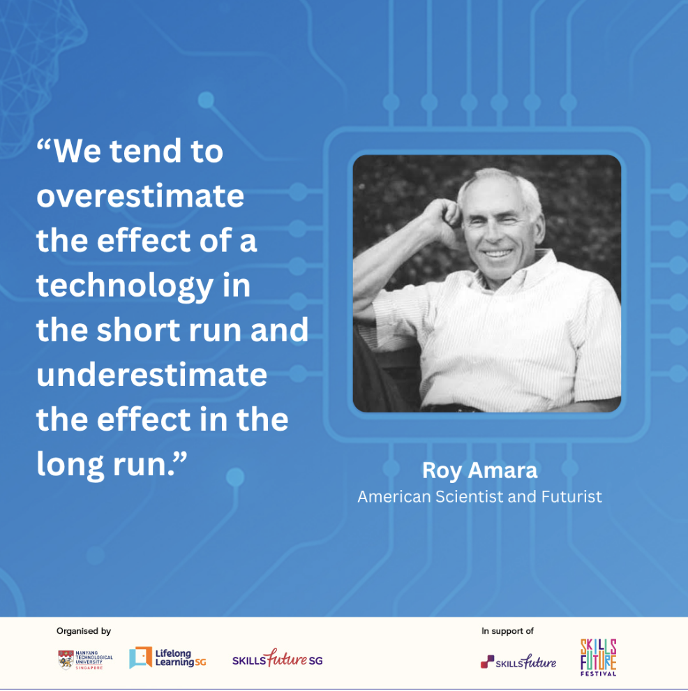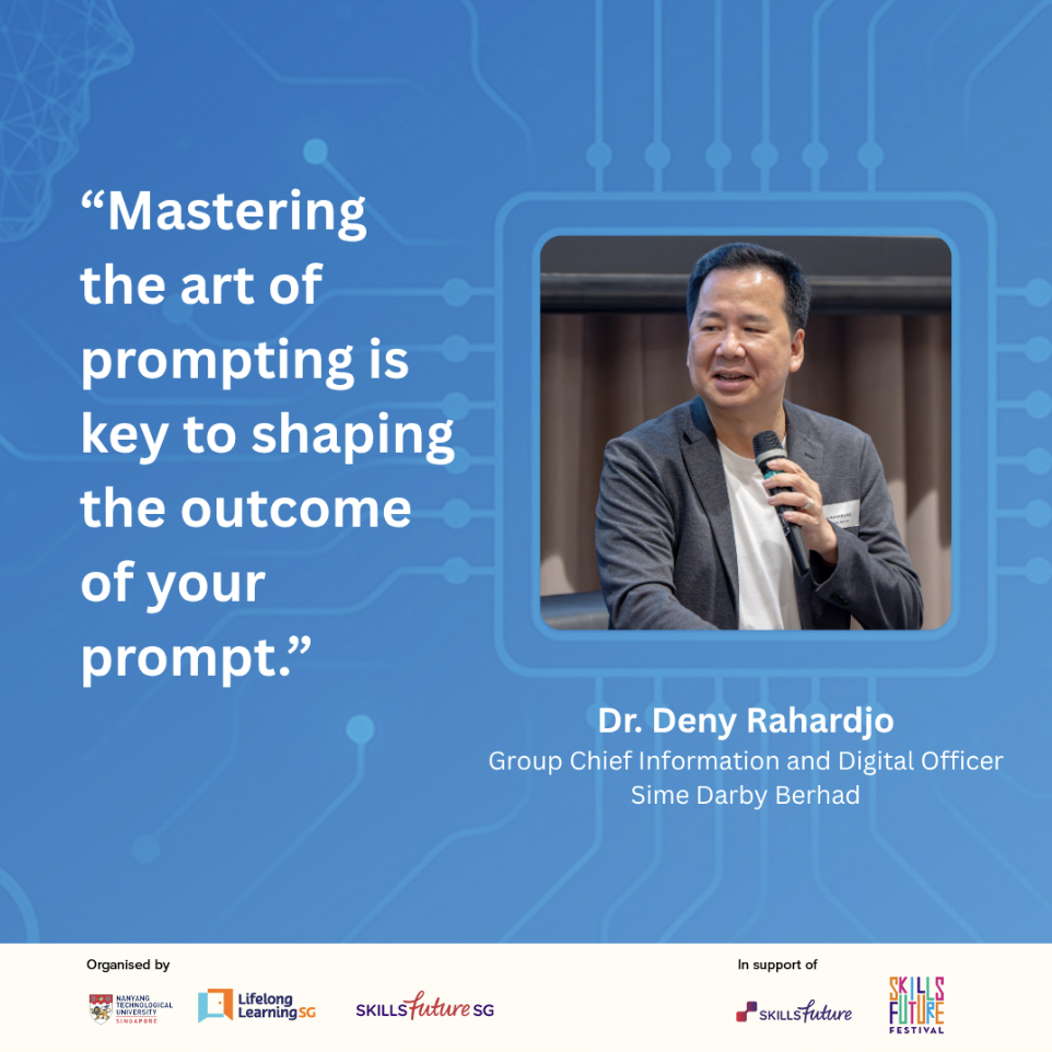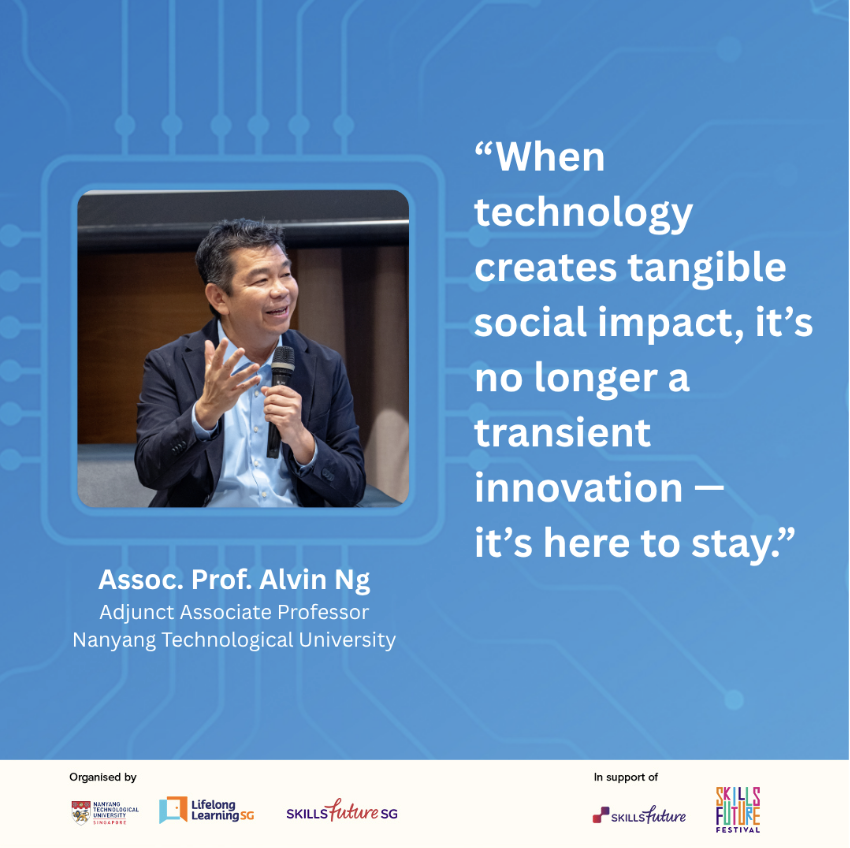 NTU Adjunct Associate Professor Alvin Ng brought the audience on a compelling journey to explore how AI is reshaping careers, skillsets and lifelong employability. He shared how AI is driving transformation across diverse domains that directly influence our everyday lives — from finance and healthcare to hunger, equality, accessibility, the environment and infrastructure.