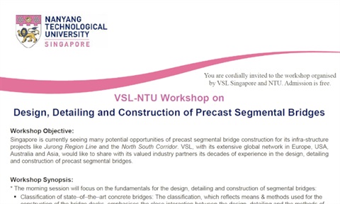 VSL-NTU Workshop on Design, Detailing and Construction of Precast Segmental Bridges