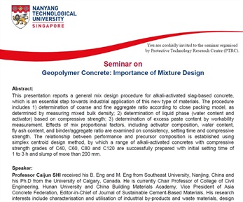 Geopolymer Concrete: Importance of Mixture Design, Prof Shi Caijun, 1 Feb 2019