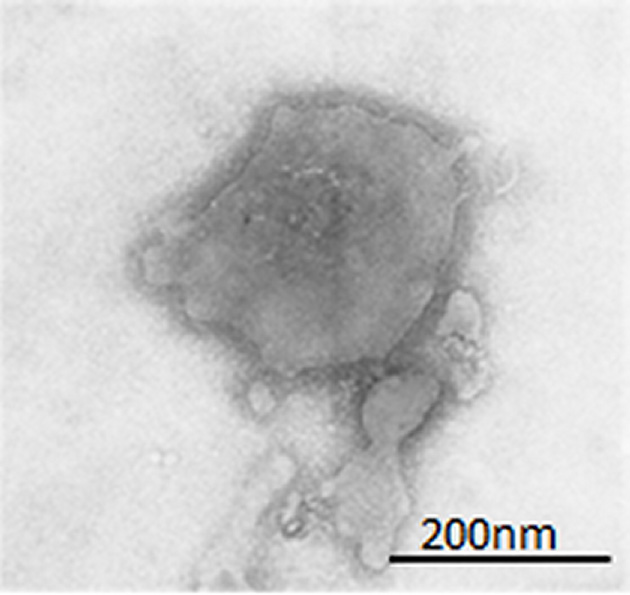 Transmission electron microscope image of an RSV particle. Image credit: Assoc Prof Richard Sugrue.