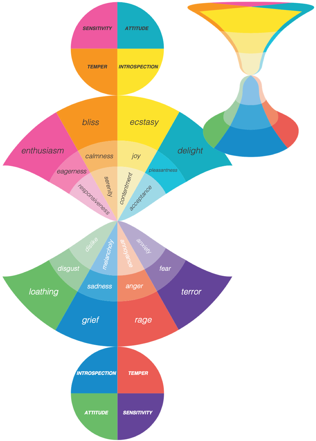 The Hourglass of Emotions, a comprehensive and multidimensional framework for interpreting emotions, is inspired by neuroscience and motivated by psychology. Positive emotions are at the top of the hourglass, while their corresponding negative emotions are at the bottom. Credit: NTU Singapore.