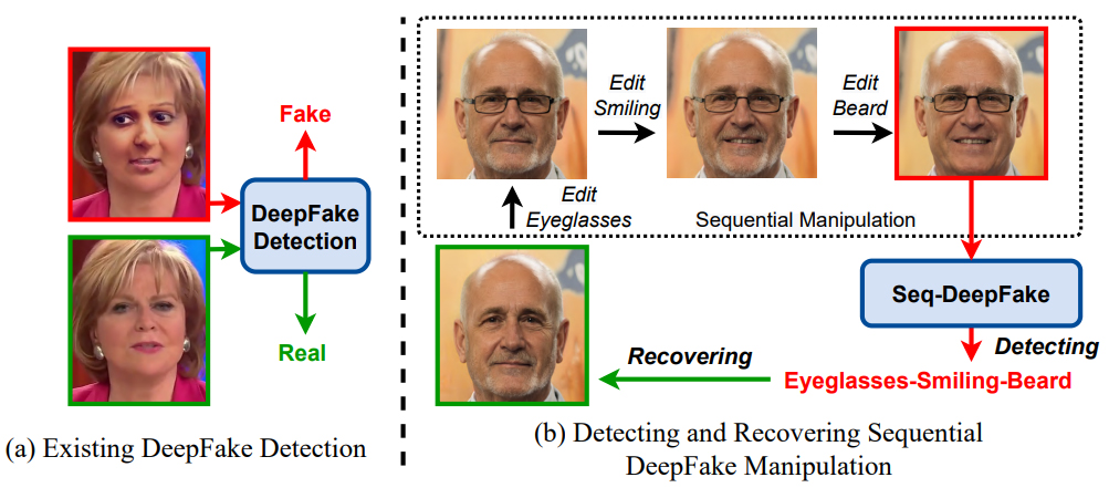 Unlike conventional deep fake detection methods that only predict whether images are real or fake, Seq-DeepFake detects the traces left behind by the manipulation sequentially. The alterations are detected within seconds.