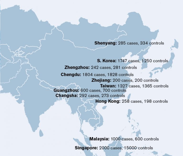 My lab has been working on building a corresponding large Asian sample collection. In collaboration with research groups in seven Asian regions, including Singapore, Malaysia, Hong Kong, Taiwan, China, South Korea and Japan, we are assembling a collection of genomic DNA from 10,000 Parkinson’s disease patients of East Asian heritage (Figure 2).