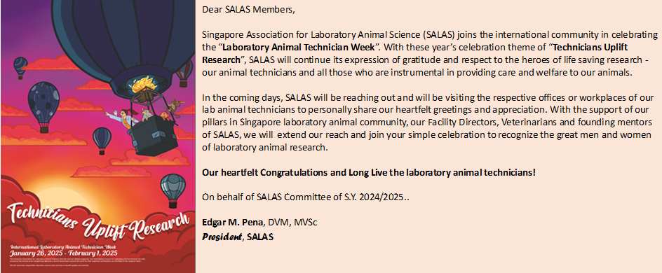 Click here to view the Singapore Association for Laboratory Animal Science’s (SALAS’) message on their plans to commemorate this event