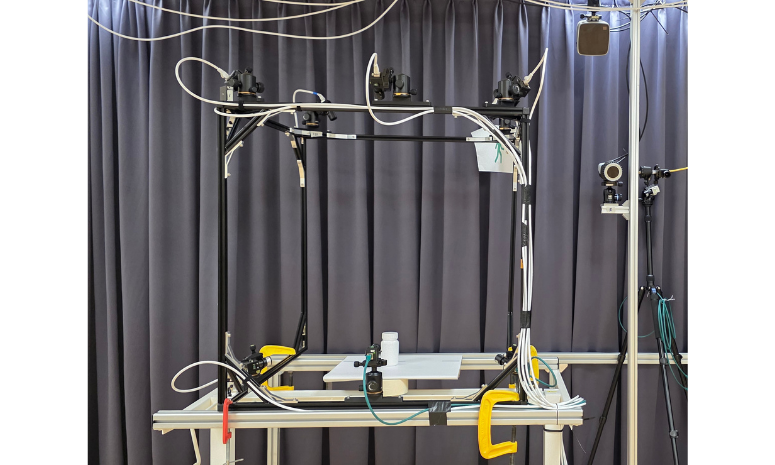 Eight cameras with in-house software, capable of tracking human outlines without markers