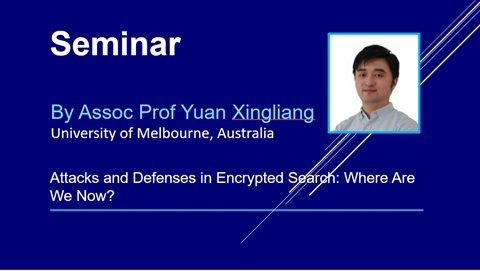 News & Events News OCBC deepens quantum research with NTU, NUS and SMU Published on 17 Jul 2025 Singapore International Cyber Week x GovWare Conference and Exhibition 2023 Published on 20 Oct 2023 INTERPOL and Netherlands Police Delegation Visit to SCRIPTS Published on 26 Apr 2023 Growing the regional cybersecurity ecosystem with Mastercard Published on 07 Dec 2022 Deputy Prime Minister Heng Swee Keat visited SCRIPTS Published on 10 Nov 2022 OCBC Bank and NTU Singapore signed MRCA Published on 10 Nov 2022 Best Paper Award winner of IEEE Wireless-Sec 2021 Published on 06 Jun 2022 OCBC-NTU Joint Workshop Published on 19 Apr 2022 ByteDance visited SCRIPTS Published on 18 Apr 2022 Netherlands and Singapore on Combating Financial Crimes in the Era of Emergent Technologies ("Roundtable") Published on 17 Feb 2022 PayPal and NTU to Enhance Cryptography Analysis in Singapore Published on 04 Dec 2021 OCBC Bank visited SCRIPTS to engage in knowledge sharing Published on 23 Apr 2021 Cybersecurity and Critical Infrastructure, Pacific Forum Published on 05 Feb 2021 IoT Security Reference Architecture, IoT Security Foundation Published on 01 Dec 2020 Exploring the Potential of Cybersecurity Careers in ASEAN Published on 15 Oct 2020 Cyber Hygiene for E-interactions During Social Distancing Published on 02 Jul 2020 Emerging Privacy-Preserving Technologies in the Data-driven Economy Published on 04 Jun 2020 Concurrent Encryption and Authentication Published on 28 Feb 2020 Secure Multiparty Computation versus Secure Outsourcing Published on 25 Feb 2020 Efficient Information-Theoretic Secure Multiparty Computation Over Z/p^k Z via Galois Rings Published on 20 Nov 2019 Events Conferences & Seminars Seminar by Dr Maggie Liu, RMIT University, Australia on 19 Feb 2025, RTP Harvard Room 19 Feb 2025 03.00 PM - 04.00 PM Add to Calendar Conferences & Seminars Seminar by Dr Raphael (Rafi) Yahalom, MIT, Cambridge, USA, 17 Feb 2025, RTP Harvard Room 17 Feb 2025 01.00 PM - 02.00 PM Add to Calendar Conferences & Seminars Seminar by Professor Wang Yan, Macquarie University, Australia, RTP Harvard Room 23 Jan 2025 03.00 PM - 04.00 PM Add to Calendar Conferences & Seminars Seminar by Assoc Prof Yuan Xingliang, University of Melbourne, Australia, RTP Harvard Room 17 Feb 2025 02.00 PM - 03.00 PM Add to Calendar Conferences & Seminars Seminar by Professor Fan Haining, Tsinghua University, China, RTP Harvard Room 23 Jan 2025 02.00 PM - 03.00 PM Add to Calendar Conferences & Seminars Seminar by Dr Xu Yanhong, Shanghai Jiao Tong University, China, RTP Harvard Room 02 Dec 2024 11.30 AM - 12.30 PM Add to Calendar Conferences & Seminars Seminar by Prof Xing Chaoping, Shanghai Jiao Tong University, China, RTP Harvard Room 02 Dec 2024 10.30 AM - 11.30 AM Add to Calendar Conferences & Seminars Seminar by Prof Yi Xun, RMIT University, Australia, 28 Nov 2024, RTP Harvard Room 28 Nov 2024 02.00 PM - 03.00 PM Add to Calendar Conferences & Seminars Seminar by Dr Raphael (Rafi) Yahalom, MIT, Cambridge, USA, 25 Nov 2024, RTP Harvard Room 25 Nov 2024 02.00 PM - 03.00 PM Add to Calendar Workshops & Classes 5th SCRIPTS Research Students Workshop 18 Nov 2024 10.00 AM - 04.00 PM Add to Calendar Workshops & Classes Young Global Leaders from WEF visited SCRIPTS 29 Feb 2024 10.00 AM - 11.00 AM Add to Calendar Workshops & Classes 4th SCRIPTS Research Students Workshop 21 May 2024 10.00 AM - 04.00 PM Add to Calendar Workshops & Classes 3rd SCRIPTS Research Students Workshop 20 Nov 2023 11.00 AM - 01.00 PM Add to Calendar Workshops & Classes 2nd SCRIPTS Research Students Workshop 27 Feb 2023 01.00 PM - 04.45 PM Add to Calendar Workshops & Classes 1st SCRIPTS Research Students Workshop 23 Sep 2022 01.00 PM - 04.00 PM Add to Calendar Workshops & Classes Joint Workshop on PP-Tech with ISACA/IAPP/PDPC 25 Aug 2022 10.00 AM - 01.00 PM Add to Calendar Workshops & Classes OCBC-NTU Joint Workshop 19 Apr 2022 08.45 AM - 12.00 PM Add to Calendar Workshops & Classes Privacy-Preserving Technologies 03 Mar 2022 - 04 Mar 2022 Add to Calendar Conferences & Seminars PROVSEC 2020 29 Nov 2020 - 01 Dec 2020 Add to Calendar Seminars Netherlands and Singapore on Combating Financial Crimes in the Era of Emergent Technologies ("Roundtable") Published on 17 Feb 2022 Cybersecurity and Critical Infrastructure, Pacific Forum Published on 05 Feb 2021 IoT Security Reference Architecture, IoT Security Foundation Published on 01 Dec 2020 Exploring the Potential of Cybersecurity Careers in ASEAN Published on 15 Oct 2020 Cyber Hygiene for E-interactions During Social Distancing Published on 02 Jul 2020 Emerging Privacy-Preserving Technologies in the Data-driven Economy Published on 04 Jun 2020 Concurrent Encryption and Authentication Published on 28 Feb 2020 Secure Multiparty Computation versus Secure Outsourcing Published on 25 Feb 2020 Efficient Information-Theoretic Secure Multiparty Computation Over Z/p^k Z via Galois Rings Published on 20 Nov 2019 Synthetizing Privacy-Preserving Time Use Traces Published on 20 Nov 2019 MPC Engines and their Applications in Secure & Private Business Transactions Published on 25 Oct 2019 Private Set Intersection Published on 29 Aug 2019 Introduction to Secure Multi-Party Computation Published on 22 Aug 2019 Privacy-preserving Techniques with Applications in Biomedical Data and Other Areas Published on 14 Aug 2019 Introduction to Fully Homomorphic Encryption Published on 07 Aug 2019