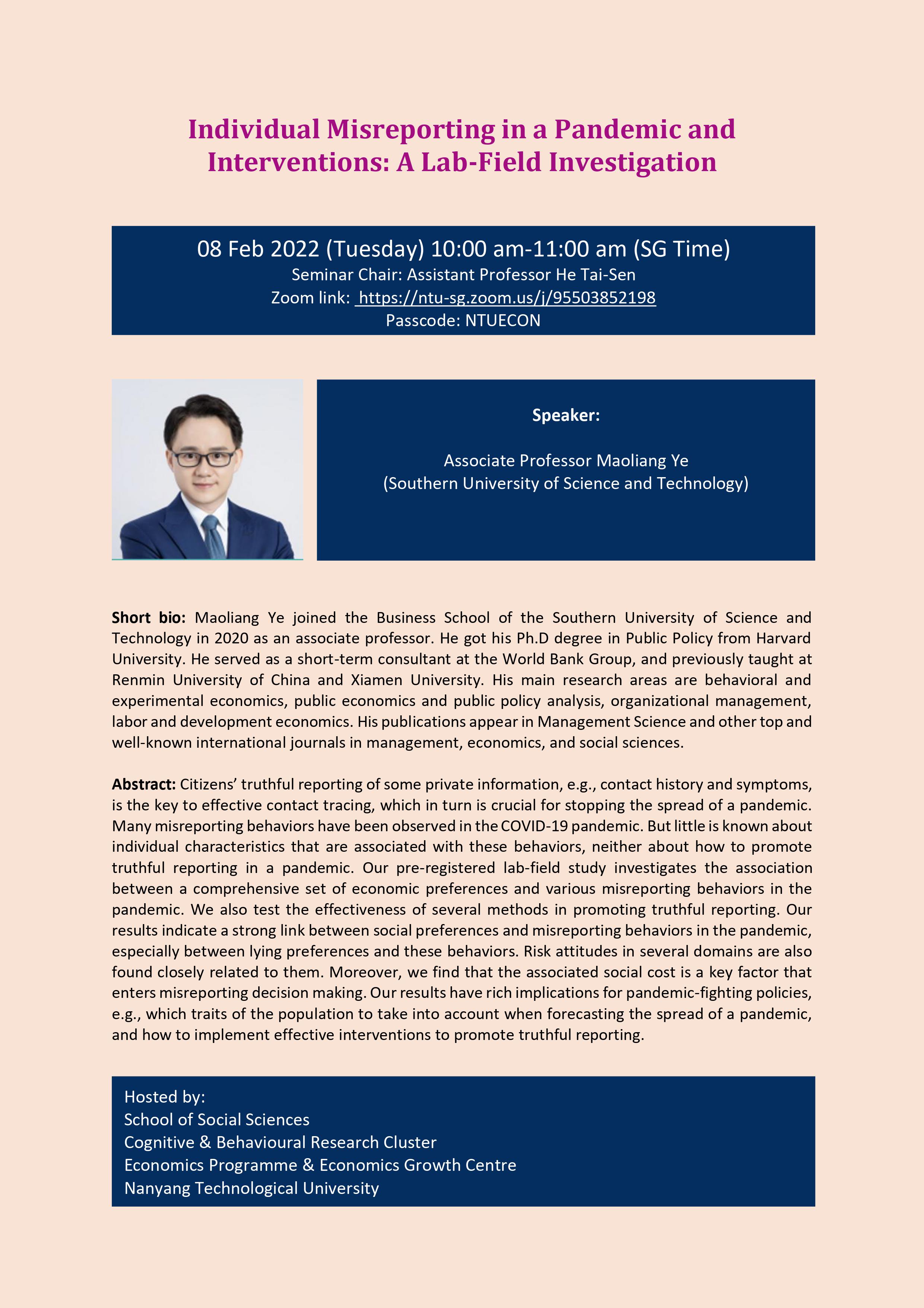 Cognitive & Behavioural Research Cluster Seminar | Individual Misreporting in a Pandemic and Interventions: A Lab-Field Investigation