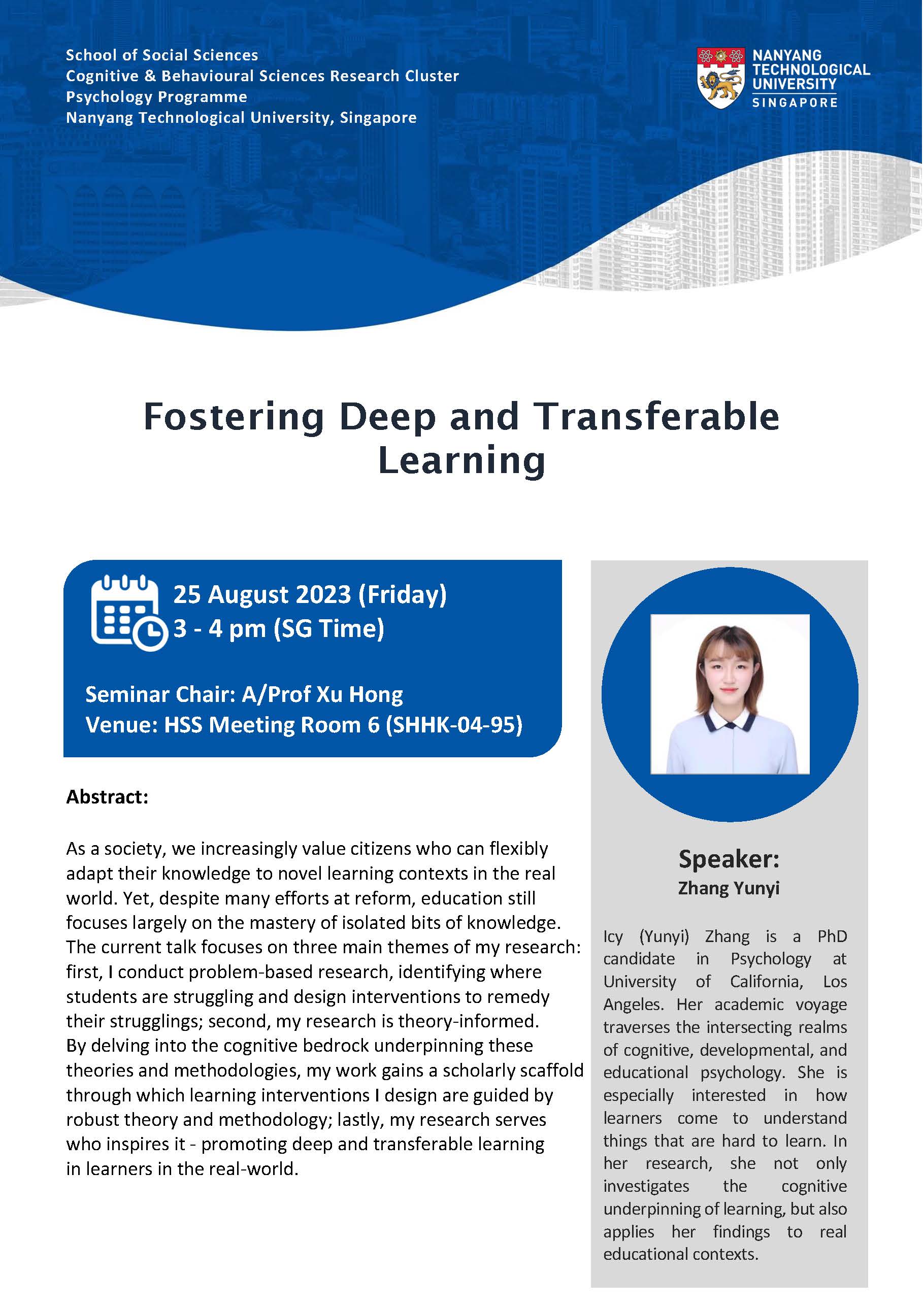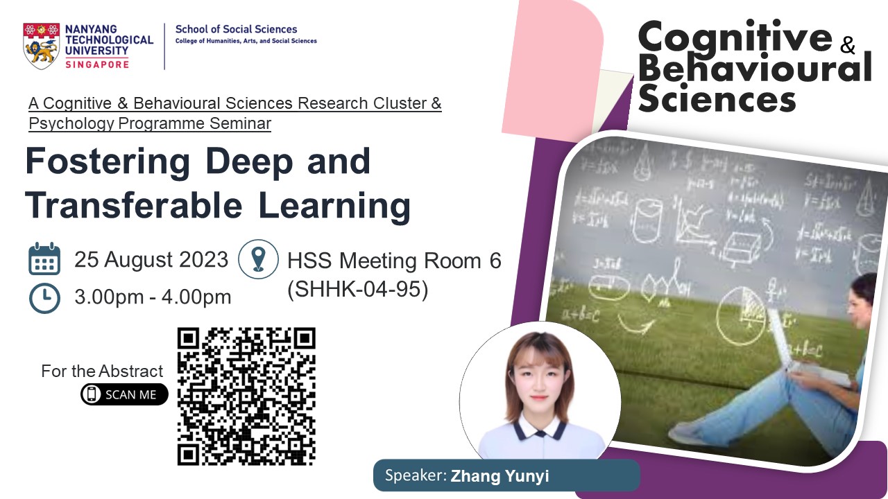 A Cognitive & Behavioural Sciences Research Cluster & Psychology Programme Seminar: Fostering Deep and Transferable Learning
