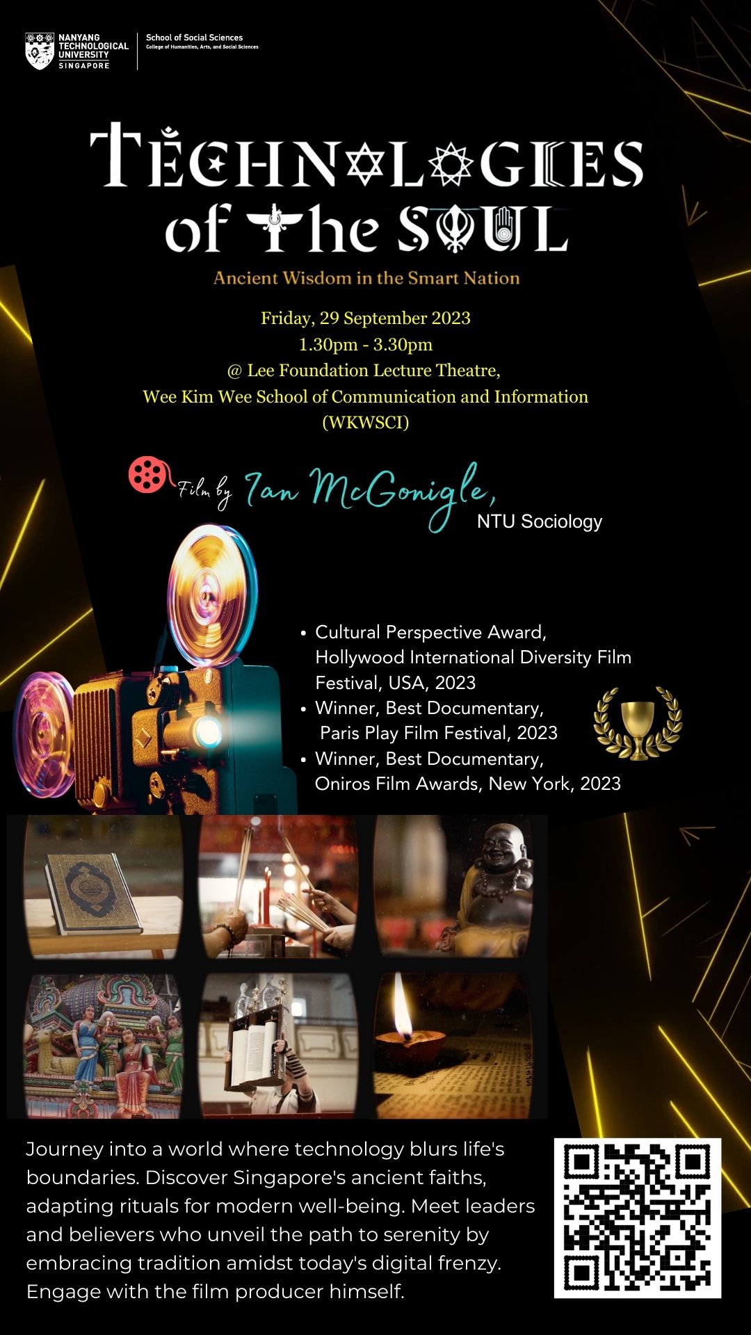 The School of Social Sciences (Asst/P Ian McGonigle, Sociology) and the School of Humanities (Asst/P Christopher Trigg, English; and SoH’s Religion, Society and Trust research cluster) would like to invite you to a film screening and dialogue session on 29 September 2023, Friday, at 1:30pm-3:30pm, at the Lee Foundation Lecture Theatre, WKWSCI.