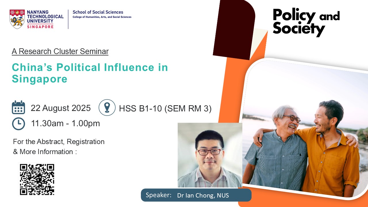 (Policy and Society - Research Cluster Seminar) China’s Political Influence in Singapore