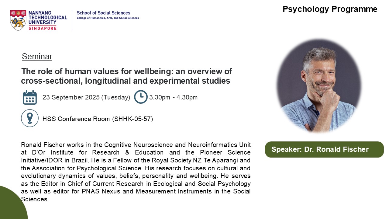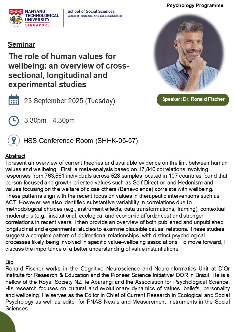 (Psychology Seminar) The role of human values for wellbeing: an overview of cross-sectional, longitudinal and experimental studies