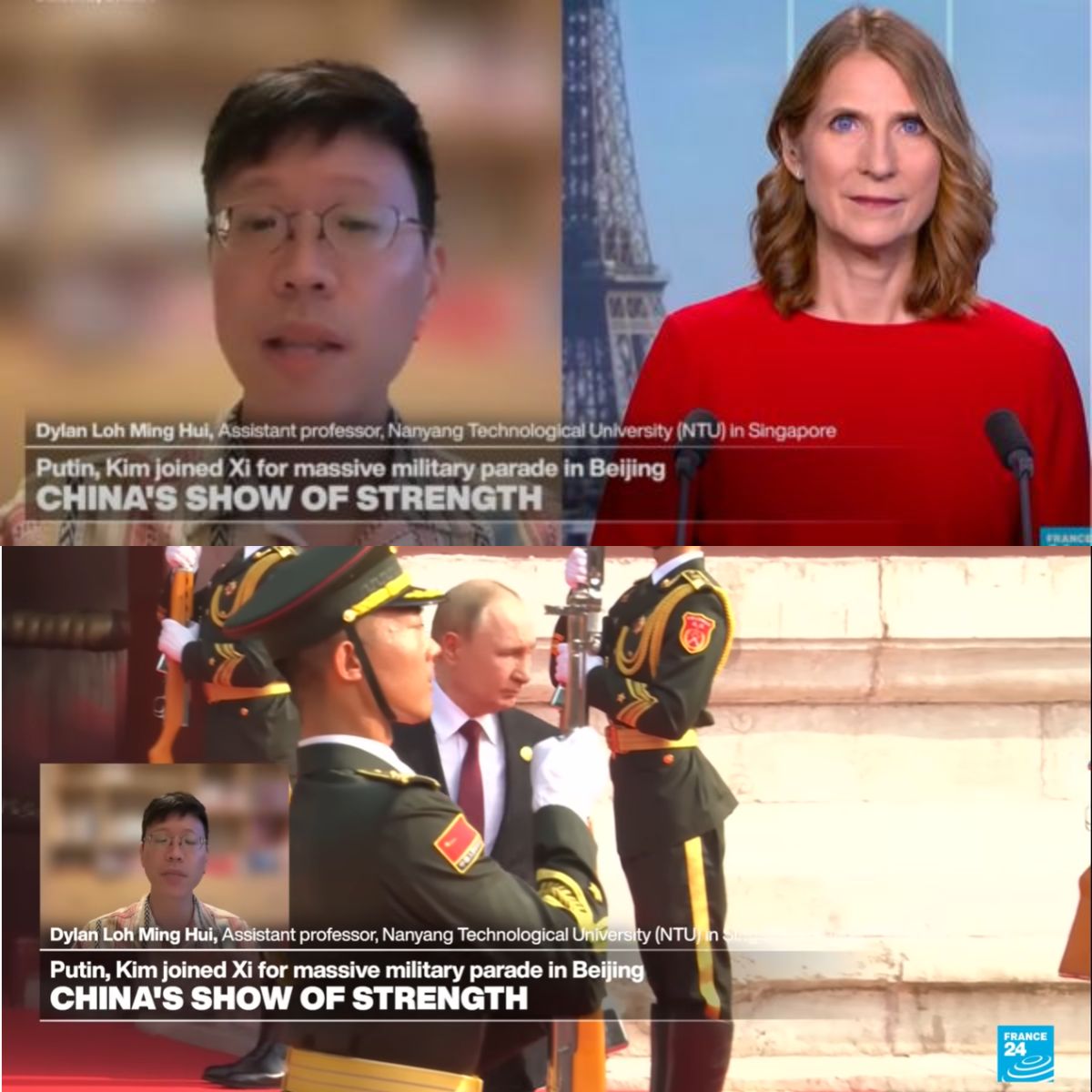 As Xi Jinping seeks to "highlight his strength at home and growing influence on the world stage," FRANCE 24's Genie Godula welcomes Dylan Loh Ming Hui, Associate Professor in the School of Social Sciences at NTU. Dr Loh says that Xi's message 'landed quite successfully, particularly with members of the Global South" as well as other world leaders in attendance. He sees the pulling power China is demonstrating as a "testament to China's growing diplomatic clout". He said the military parade and Xi’s choice of words send a dual message – that China has the means if push comes to shove, but they will stick to their role of being the peacemaker.
