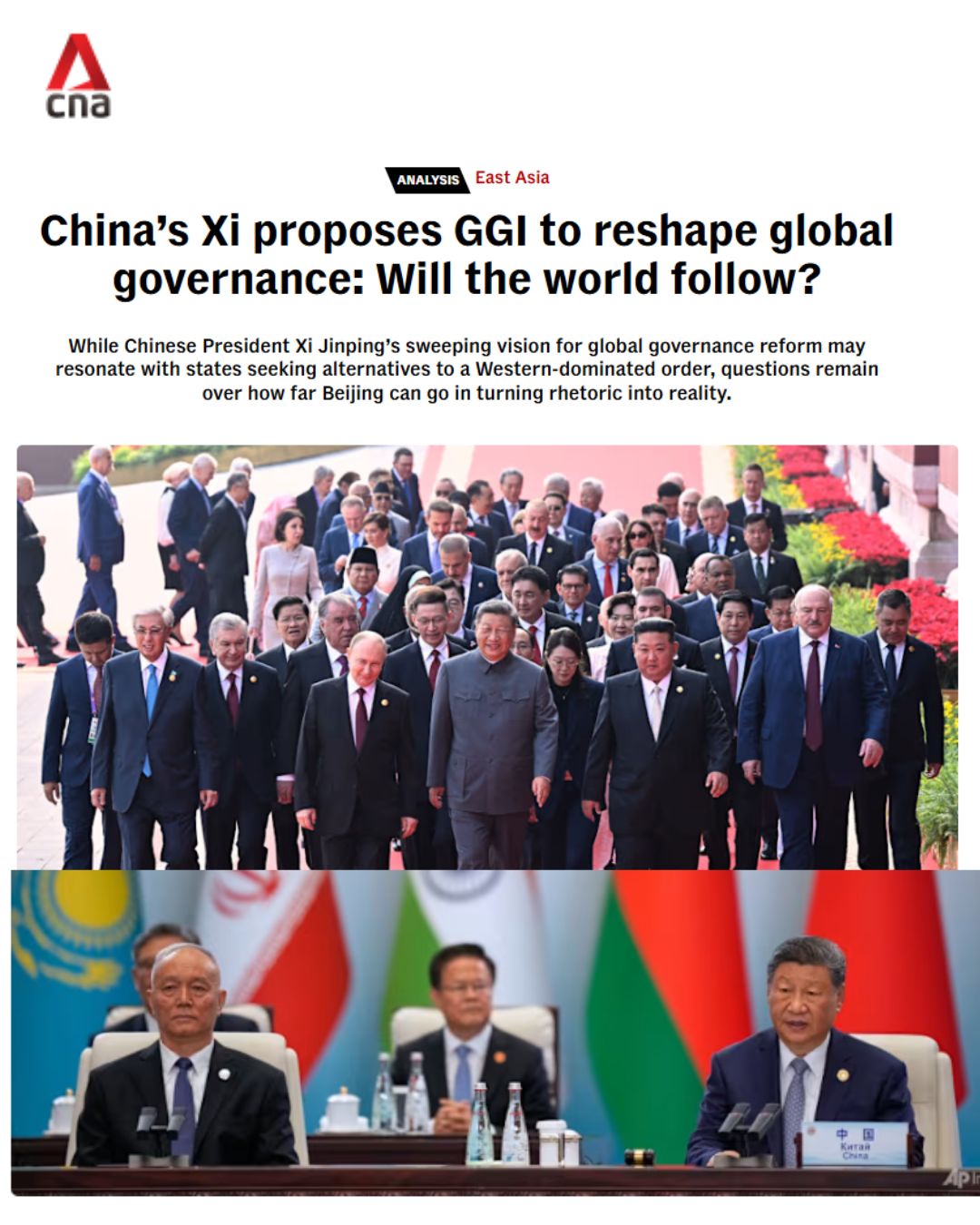 While Chinese President Xi Jinping’s sweeping vision for global governance reform may resonate with states seeking alternatives to a Western-dominated order, questions remain over how far Beijing can go in turning rhetoric into reality. “China is positioning itself as the defender of peace and as the key shaper of the new order it is proposing,” Dylan Loh, assistant professor of public policy and global affairs at Singapore’s NTU, told CNA. The GGI “offers something akin to a small roadmap” of what a new order might look like, added NTU’s Loh.