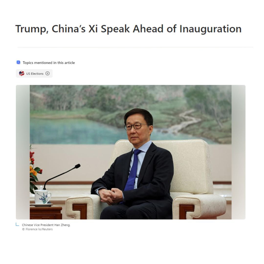 Chinese leader Xi Jinping and President-elect Donald Trump vowed to engage closely on major issues in a rare phone call ahead of next week’s inauguration, where Beijing will be represented by its vice president. Xi would have faced political risks by attending the U.S. presidential inauguration himself, particularly after Trump said he would impose additional tariffs on China from the first day of his second term as president. “Although the vice president’s role may not hold significant political power, his presence still matters as a trusted envoy of Xi,” said Dylan Loh, an assistant professor at Singapore’s NTU who studies China’s foreign policy. “Han certainly will be able to play the role of an interlocutor and a channel of communication.” Beijing is likely to follow up on Han’s trip by looking to arrange high-level meetings with the Trump administration, such as discussions between Chinese Foreign Minister Wang Yi and his American counterparts, Loh said.
