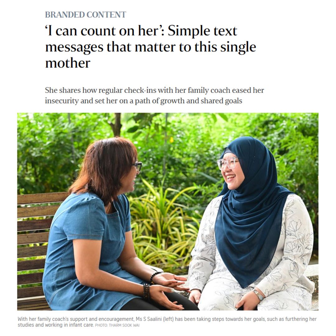 33-year-old single mother Ms S Saalini was struggling with her life but found hope after meeting Ms Nurul Huda Muhammad Akmal Tay, 24, her new family coach from the Ministry of Social and Family Development’s (MSF) ComLink+ initiative. ComLink+ aims to uplift lower-income families with children residing in public rental housing towards the “3S”: stability, self-reliance and social mobility. Ms Huda joined MSF as a family coach last July, even before completing her sociology degree. This is her first full-time job. She graduated from NTU, where she minored in youth work and guidance, in July 2024.
