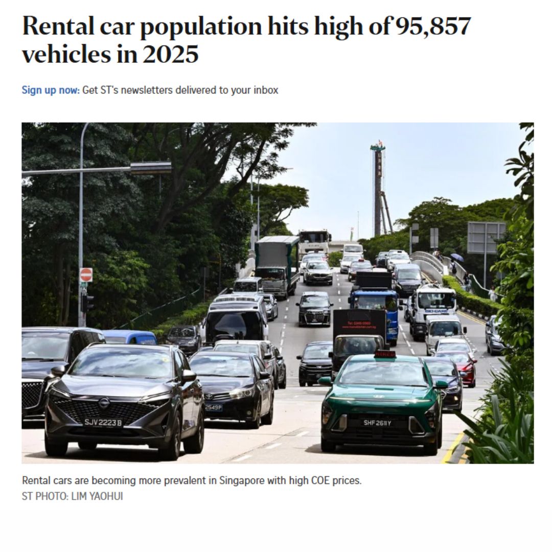 Rental cars now make up nearly 15 per cent of Singapore’s total car population, hitting a record 95,857 vehicles in 2025 as the appeal of privately owned cars continues to wane on the back of high certificate of entitlement (COE) premiums. Industry experts said the growth in the rental car population may come from people who register cars as rental vehicles as a way to get around loan restrictions imposed on private cars. Assoc Prof Bao Te from NTU said that driving a ride-hailing vehicle gives those who need a car the flexibility to get additional income to offset the high cost of ownership.