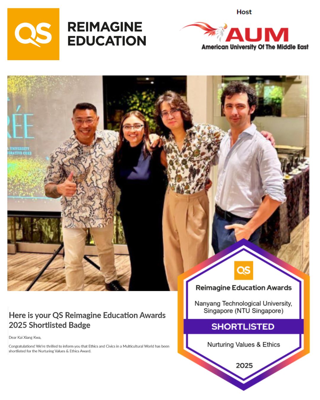 NTU Social Sciences Faculty Shortlisted for QS Reimagine Education Awards 2025