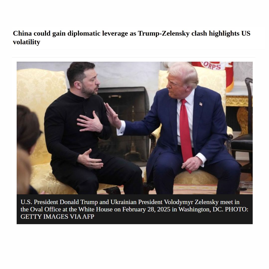 China could gain diplomatic leverage as Trump-Zelensky clash highlights US volatility