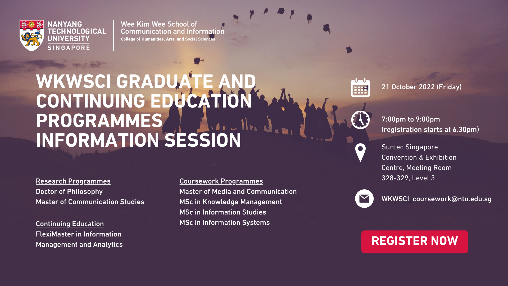 Join us at the WKWSCI Graduate and Continuing Education Programmes Information Session on 21 October 2021, 7pm to find out more!