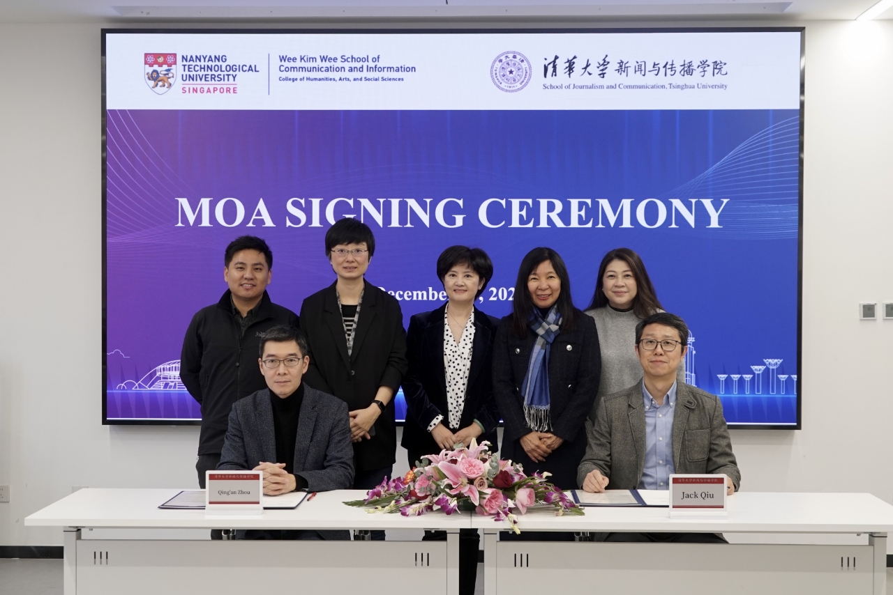 December 13, 2024 - Nanyang Technological University’s Wee Kim Wee School of Communication and Information (WKWSCI) signed a Memorandum of Agreement (MOA) with Tsinghua University’s School of Journalism and Communication to launch the Master of Journalism and Communication – Master of Media and Communication Dual Master’s Degree (MJC-MMC). This innovative programme enables Tsinghua University students to pursue advanced studies at both institutions, gaining a valuable cross-cultural education in journalism and media communication. This immersive and interdisciplinary programme is designed to respond to the burgeoning demand for skilled communication leaders.