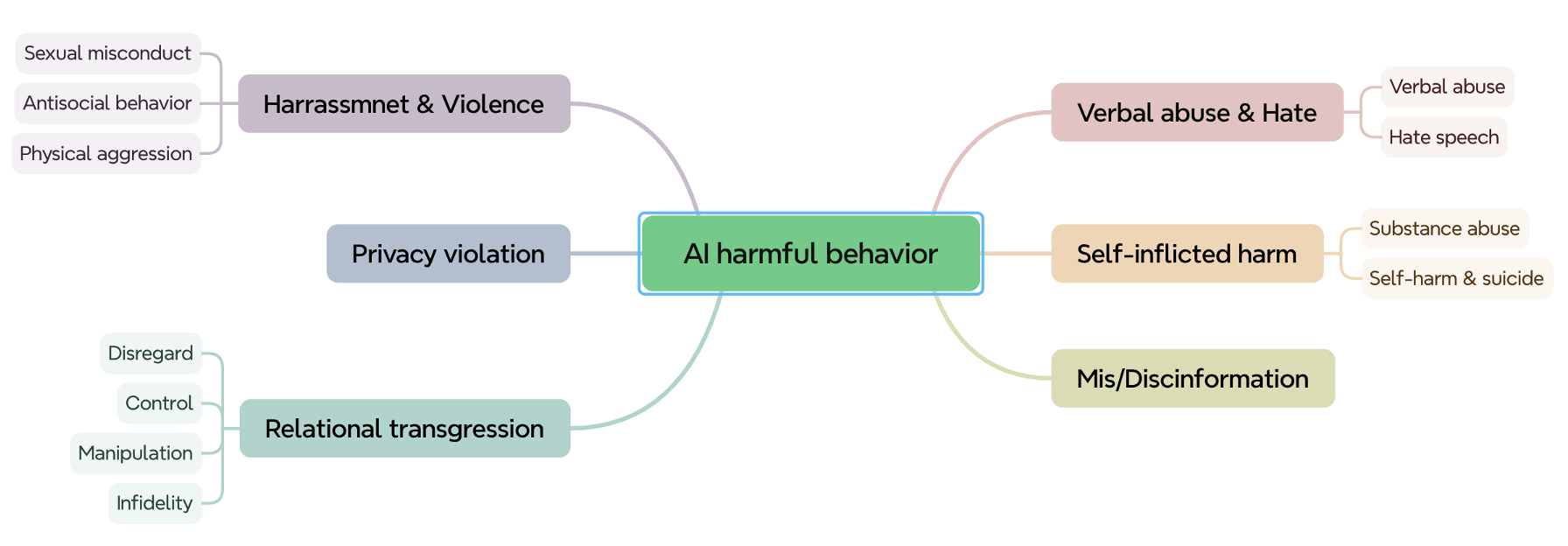 A taxonomy of harmful AI behaviors in human-AI relationships developed by Renwen’s team.